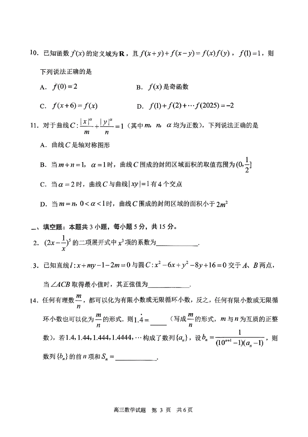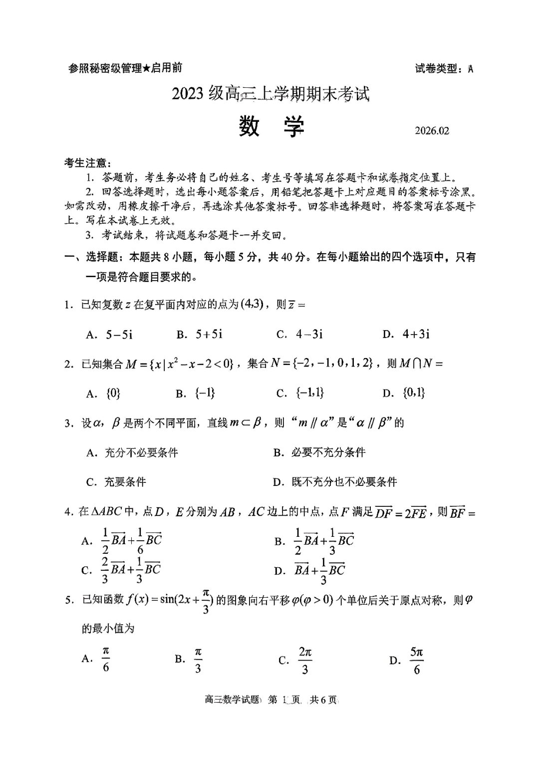 云南省昭通市2026届高三上学期高中毕业班2月期末模拟考试数学(昭通一模) 云南省昭通市2026届高三上学期高中毕业班2月期末模拟考试数学(昭通一模)