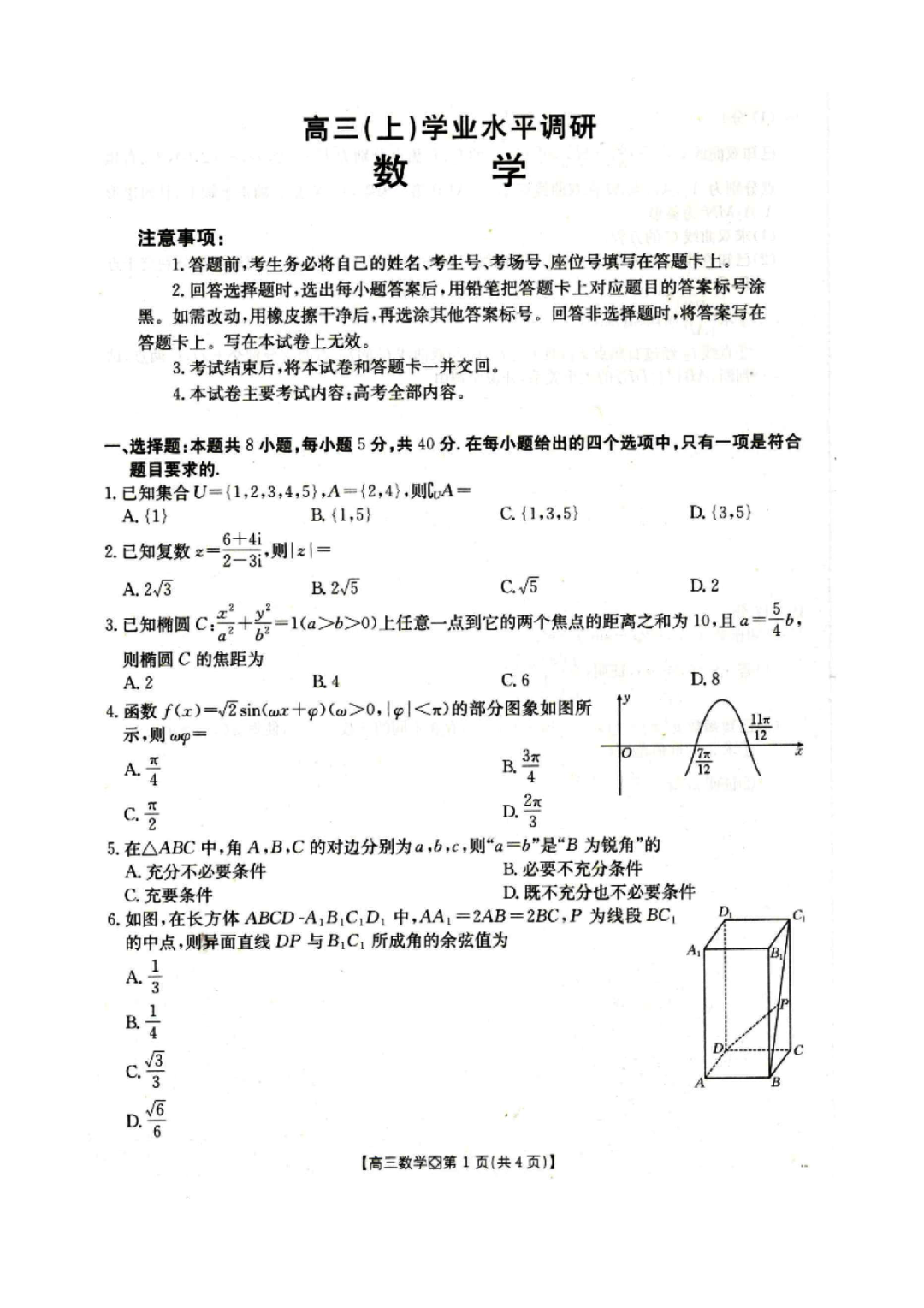 四川省字节精准教育联盟2026届高三上学期期末综合能力调查 四川省字节精准教育联盟2026届高三上学期期末综合能力调查