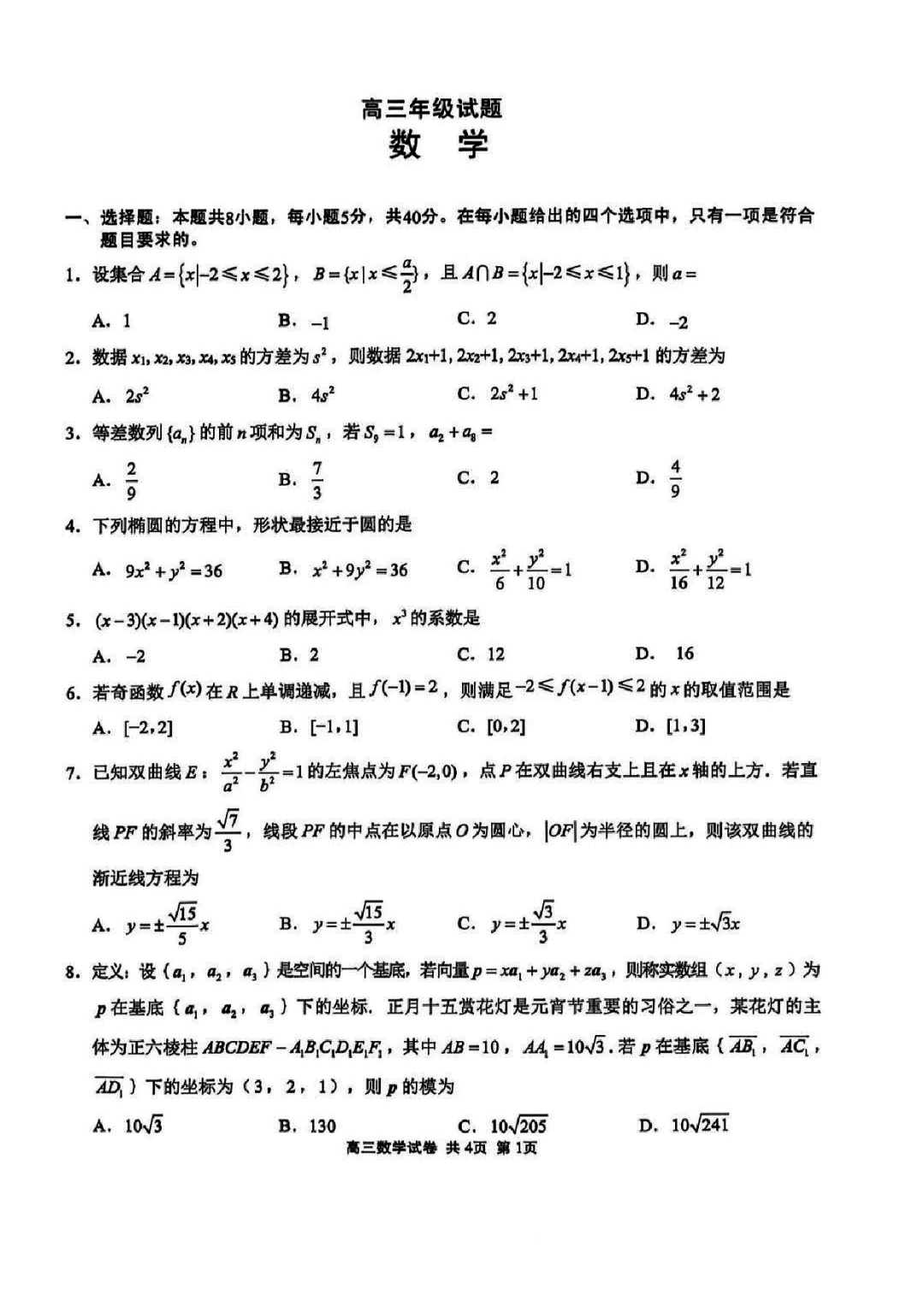 山西省太原市2026届第一学期高三年级期末学业诊断 山西省太原市2026届第一学期高三年级期末学业诊断