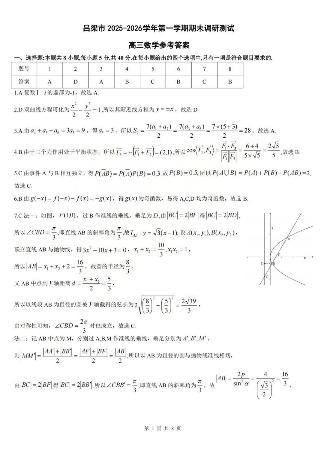 【吕梁一模全科】吕梁市2025-2026学年高三第一学期期末调研测试