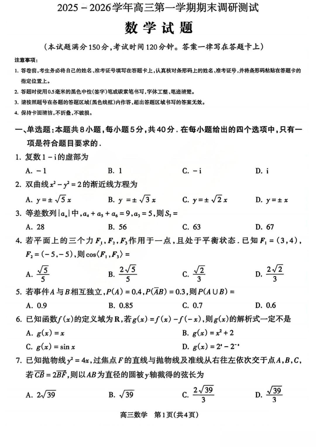 【全科】毫州市普通高中2025—2026学年度第一学期高三期末质量检测 【全科】毫州市普通高中2025—2026学年度第一学期高三期末质量检测