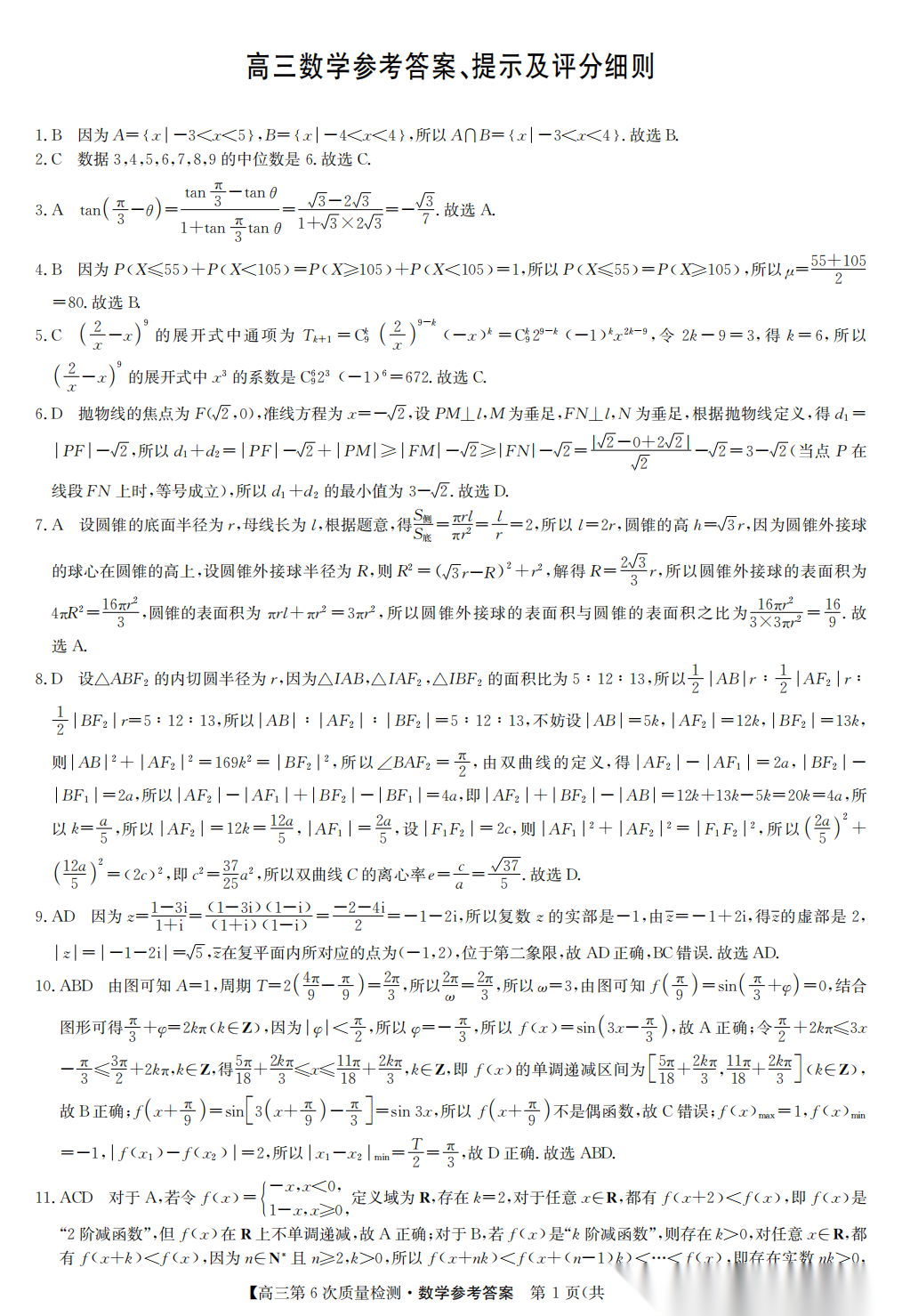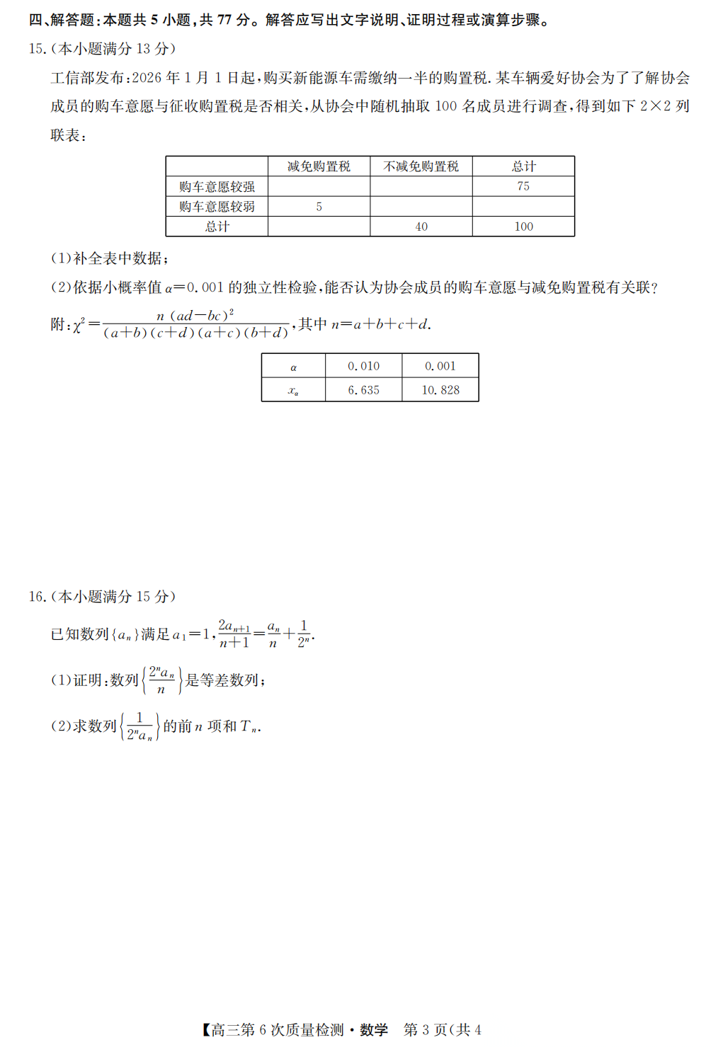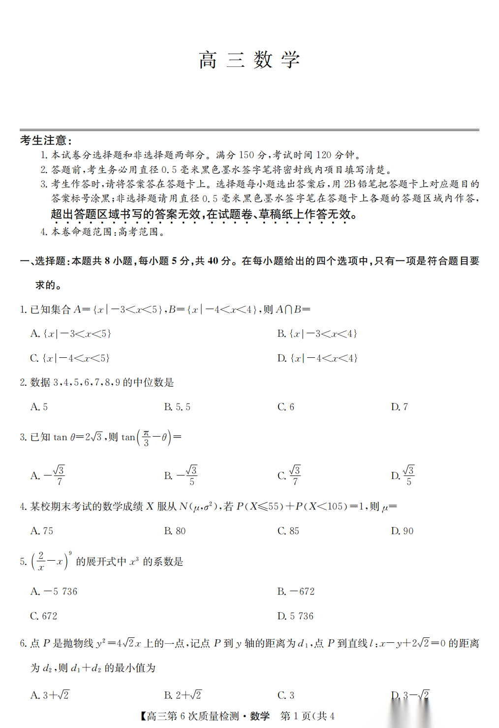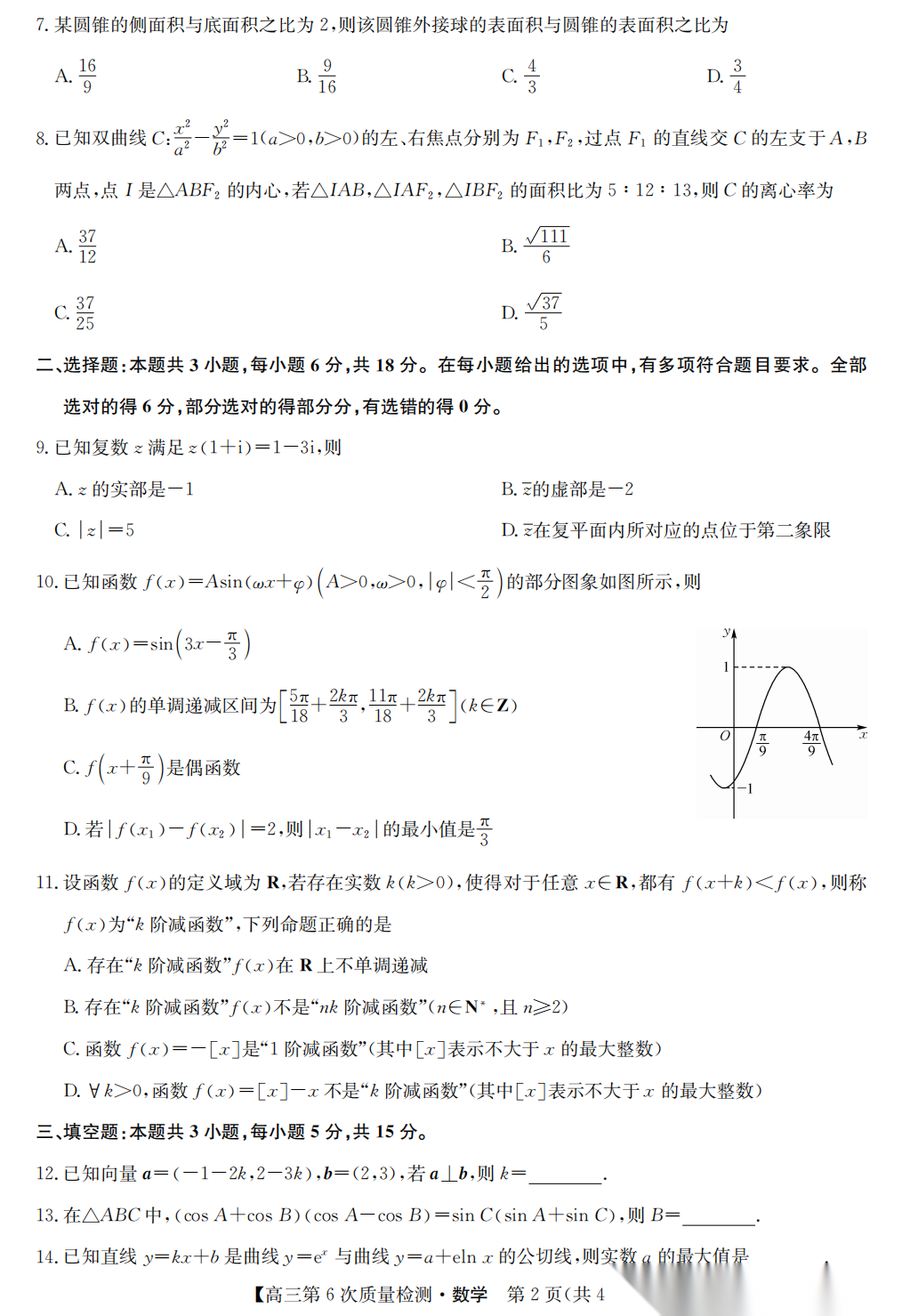【全科】九师联盟2026届高三第6次质量检测联考