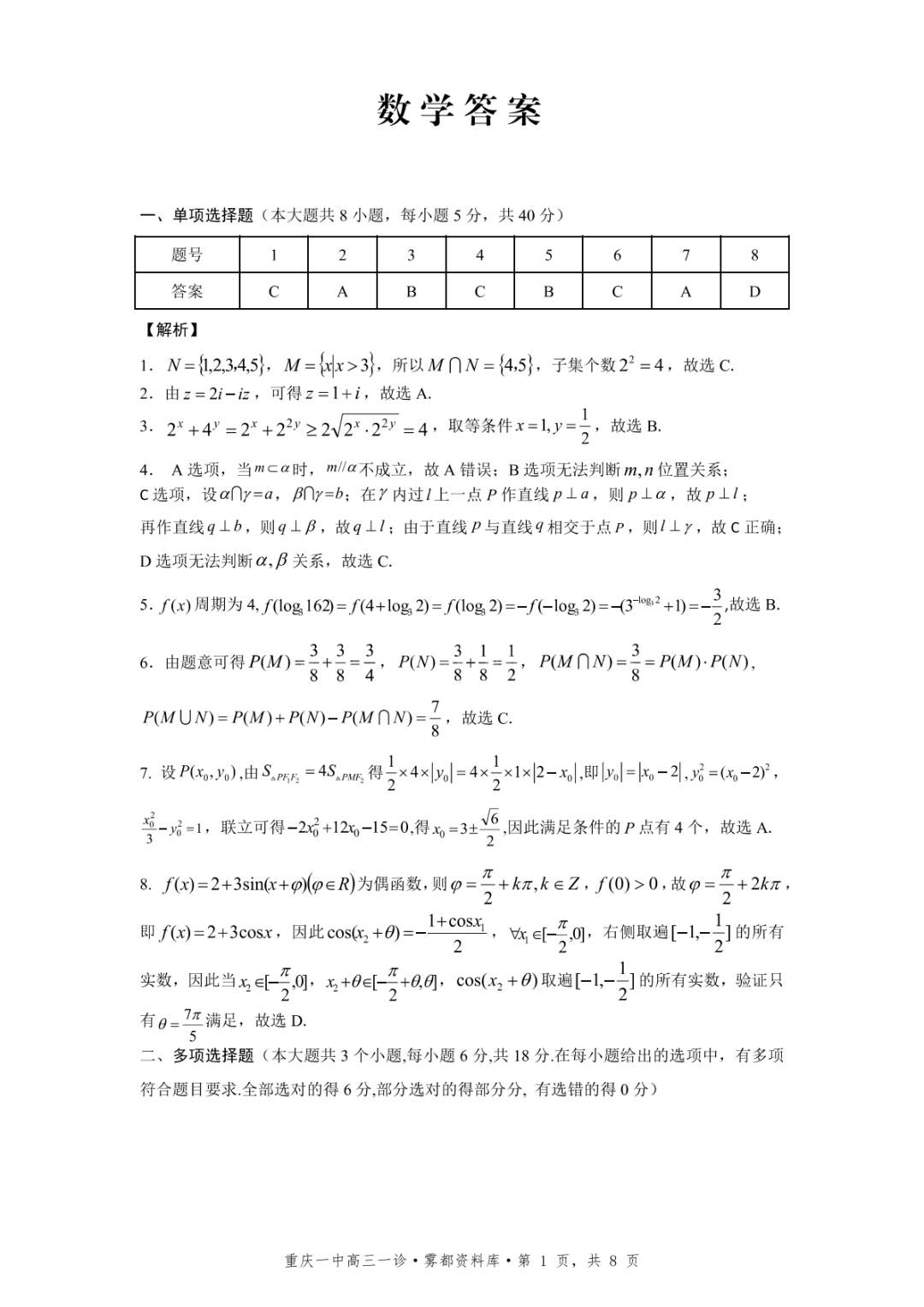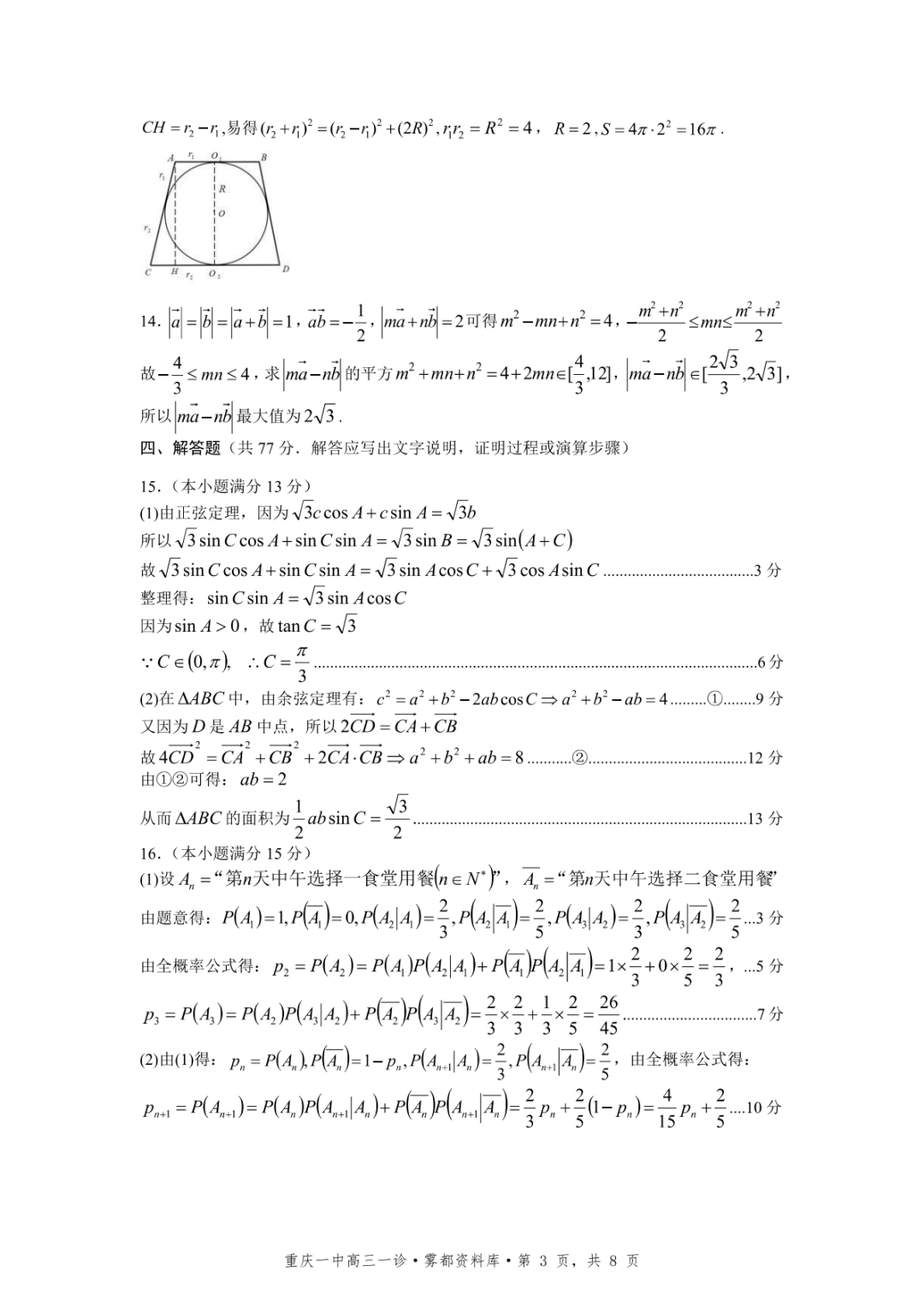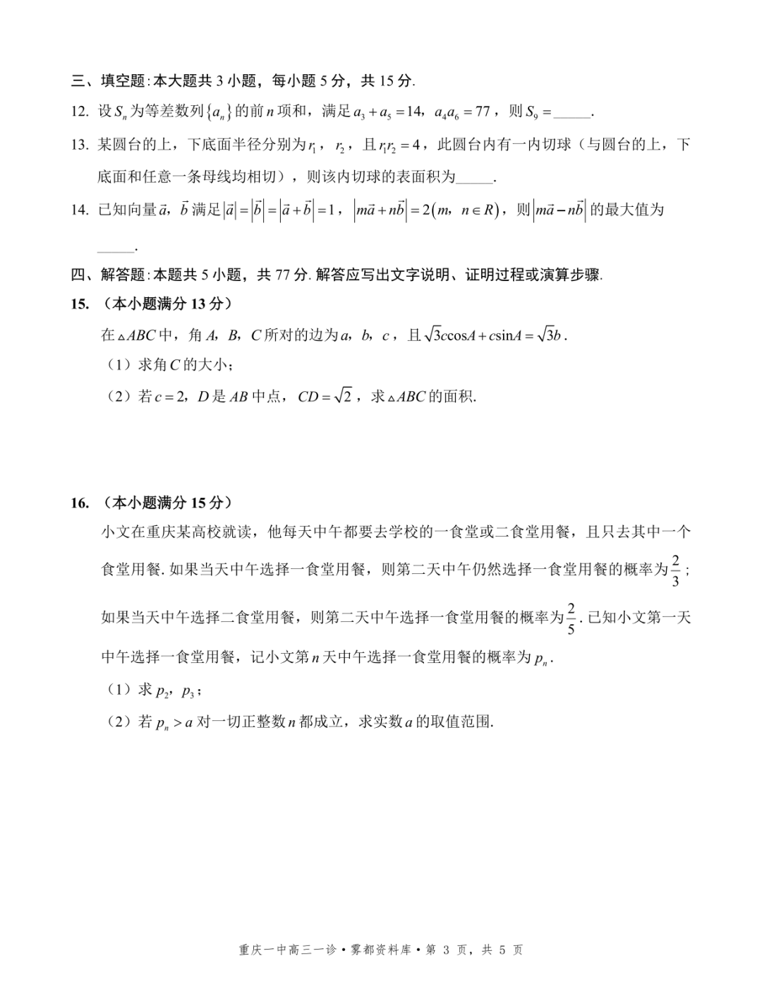 【全科】2026年重庆一中高2026届一诊模拟考试