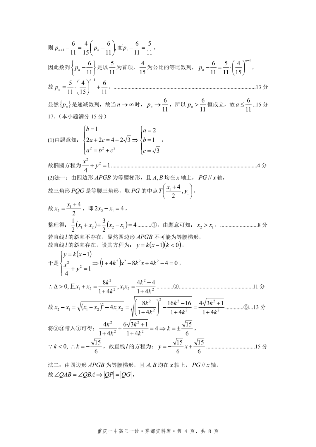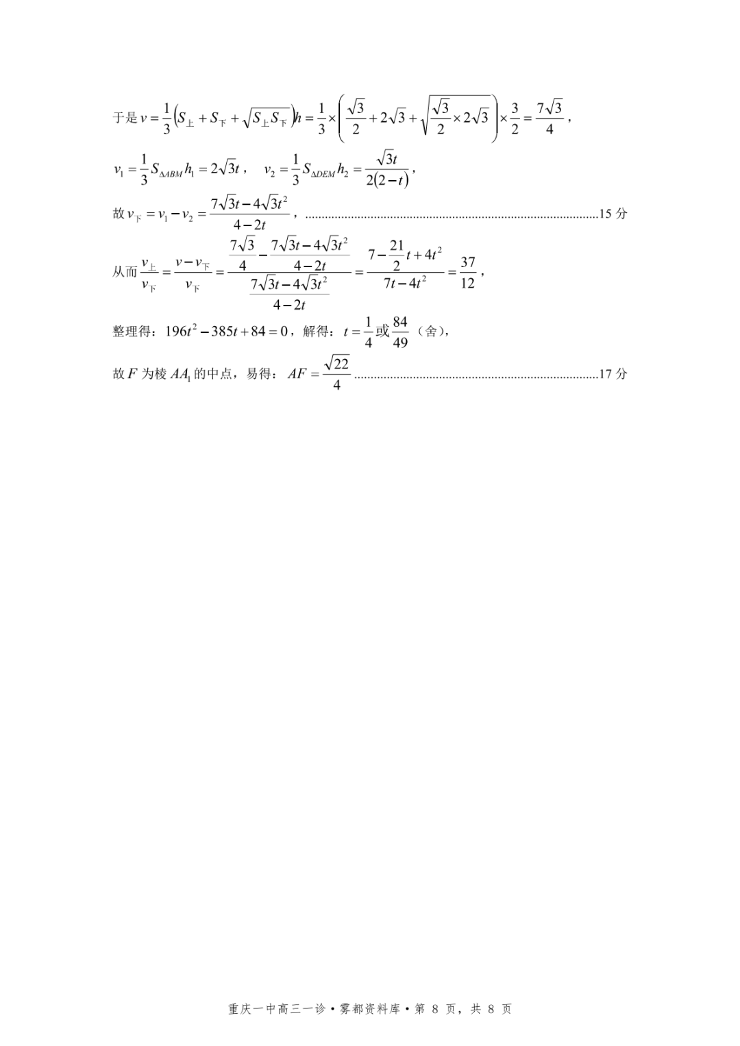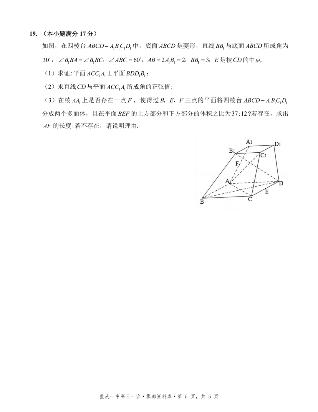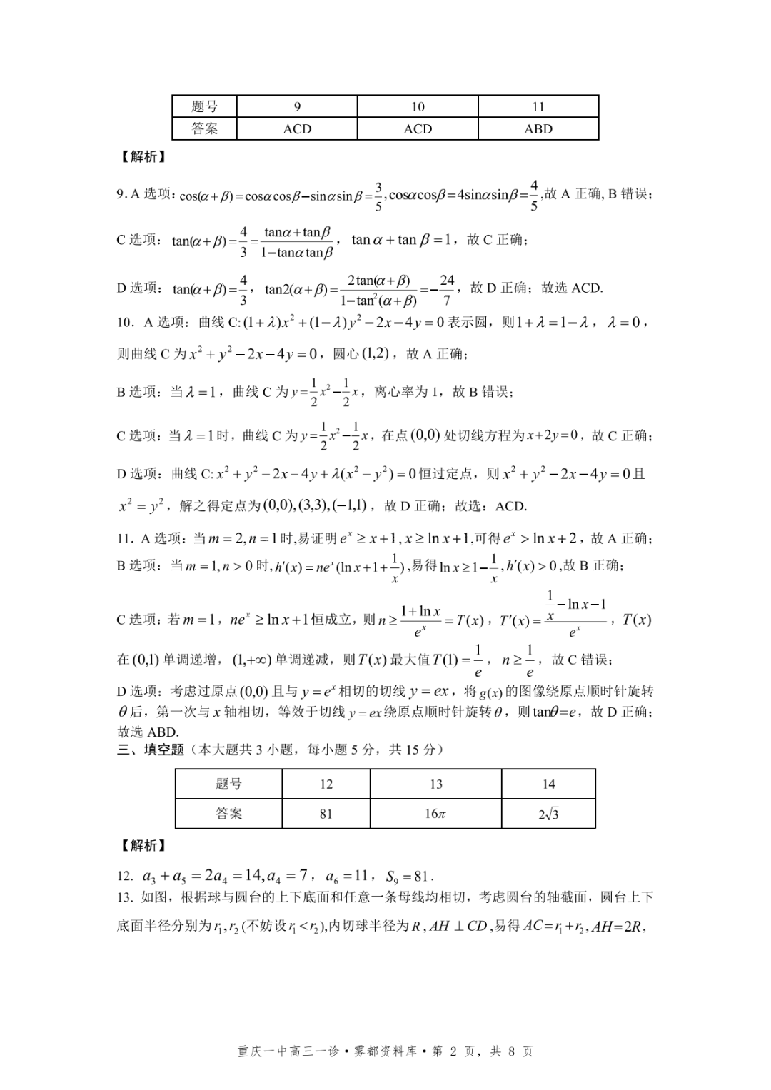 【全科】2026年重庆一中高2026届一诊模拟考试