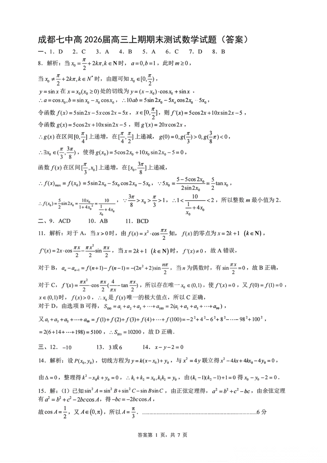 【全科】四川省成都七中高2026届高三上学期期末测试