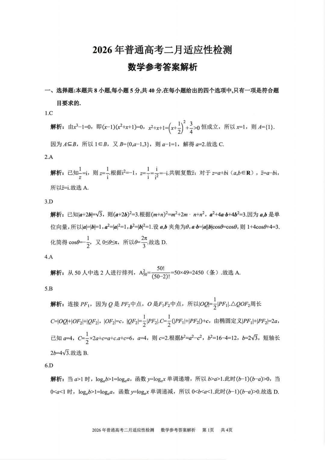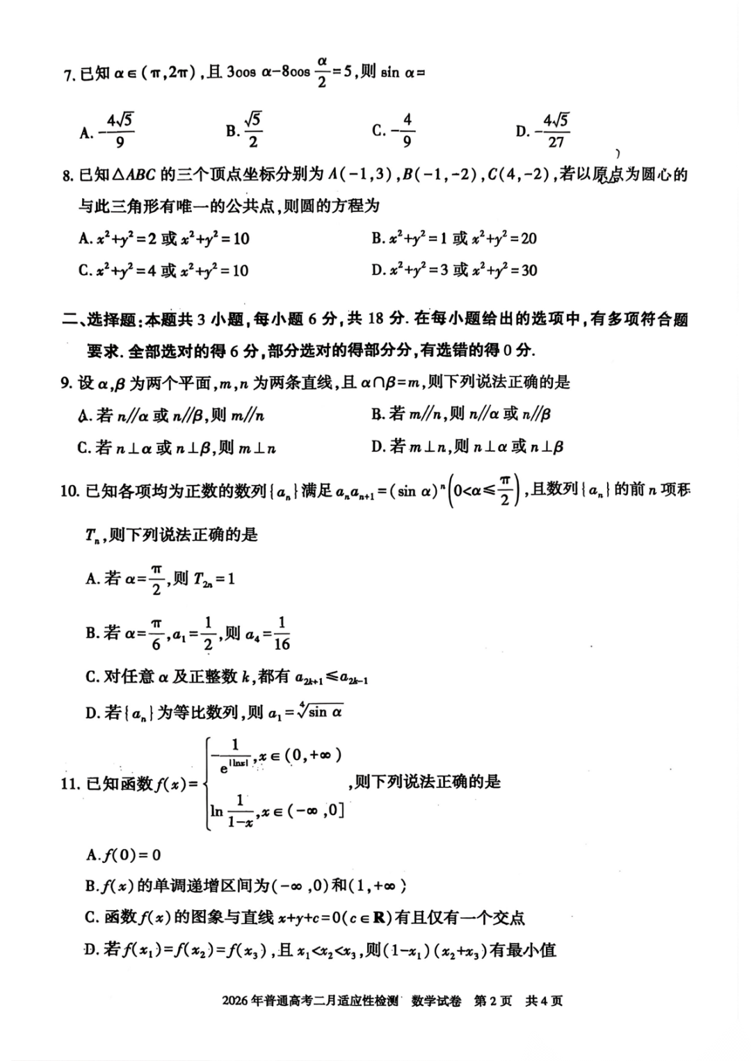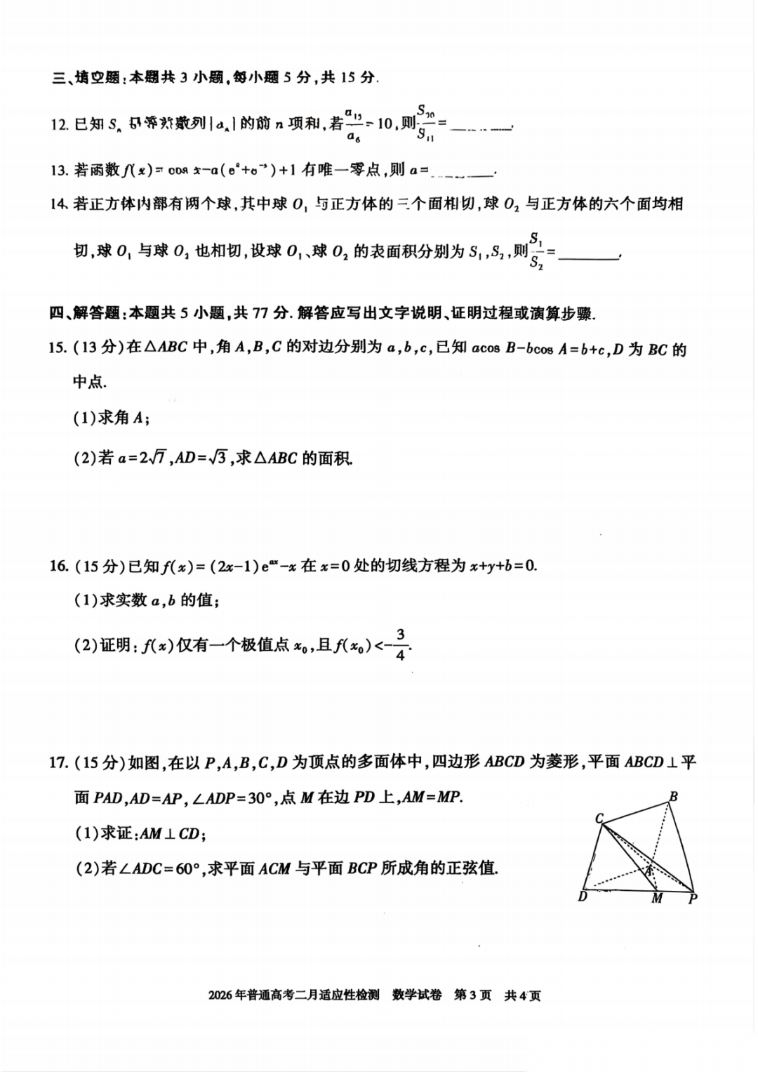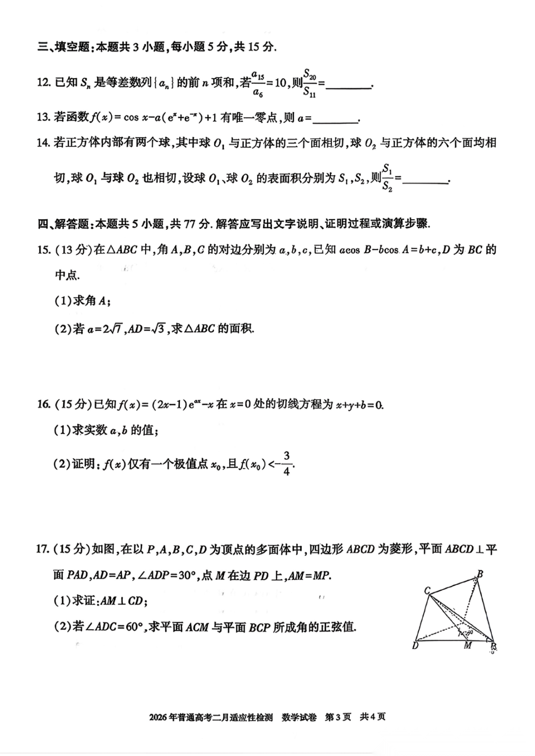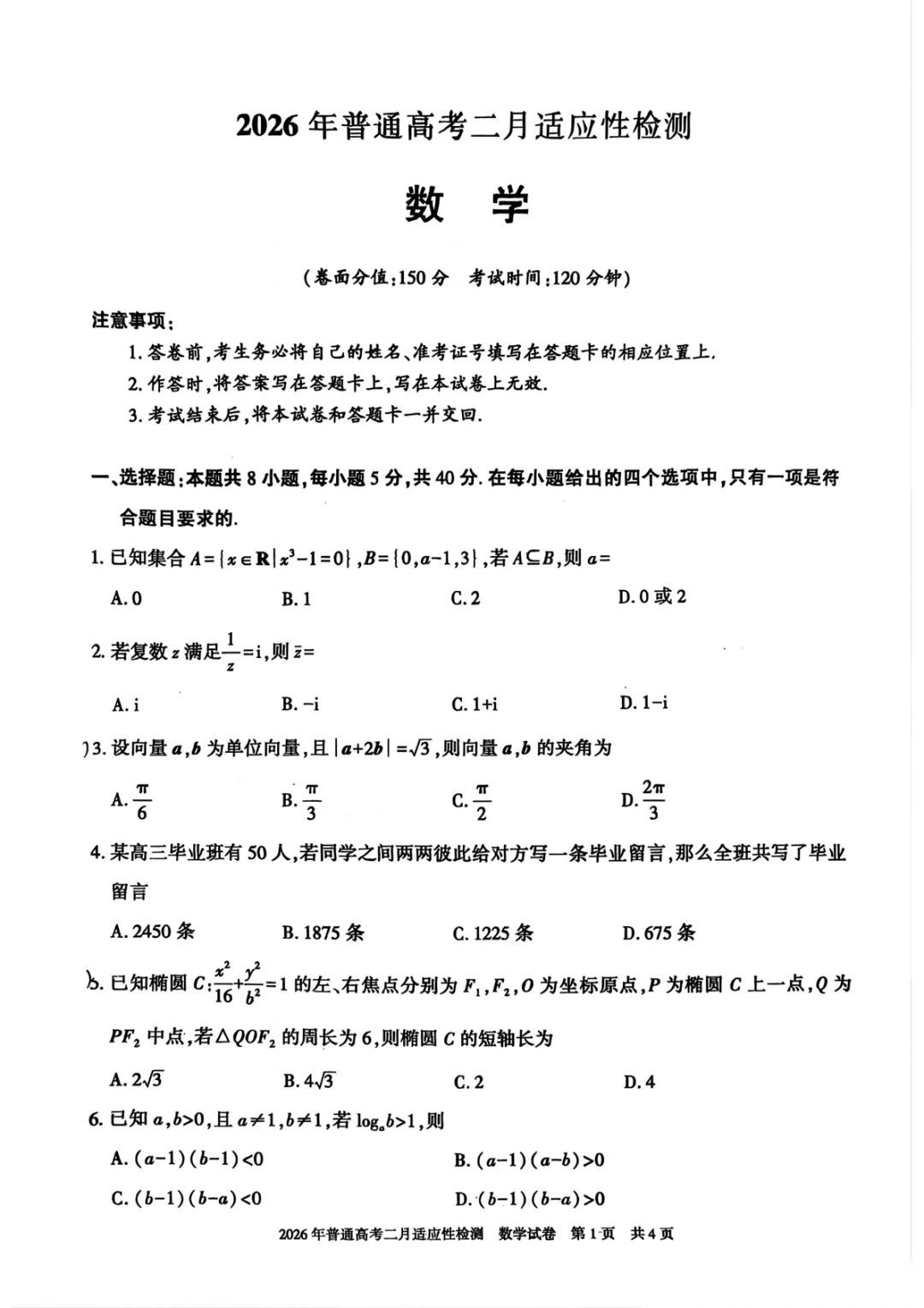 【全科】新疆自治区2026年普通高考二月适应性检测