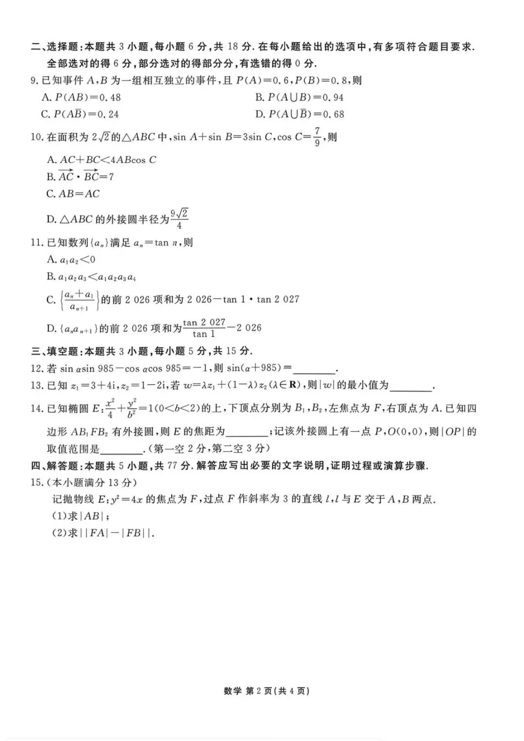 【重庆一诊】重庆市2026届高三第一次联合诊断试题及答案 【重庆一诊】重庆市2026届高三第一次联合诊断试题及答案