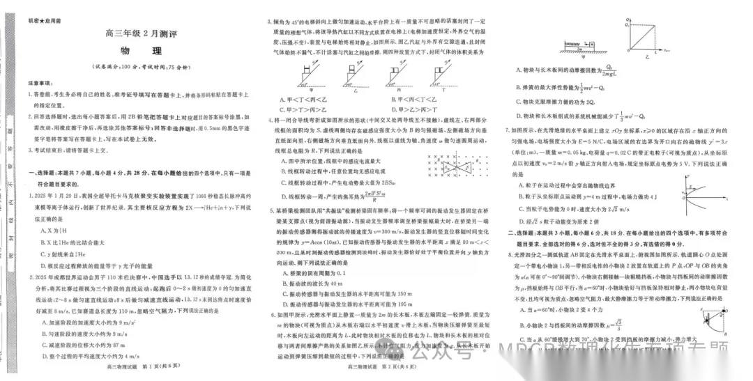 【超清无水印】:高三,山东省济南市2026 年 1 月高三期末学习质量检测(济南一模)试题及答案(更新中) 【超清无水印】:高三,山东省济南市2026 年 1 月高三期末学习质量检测(济南一模)试题及答案(更新中)