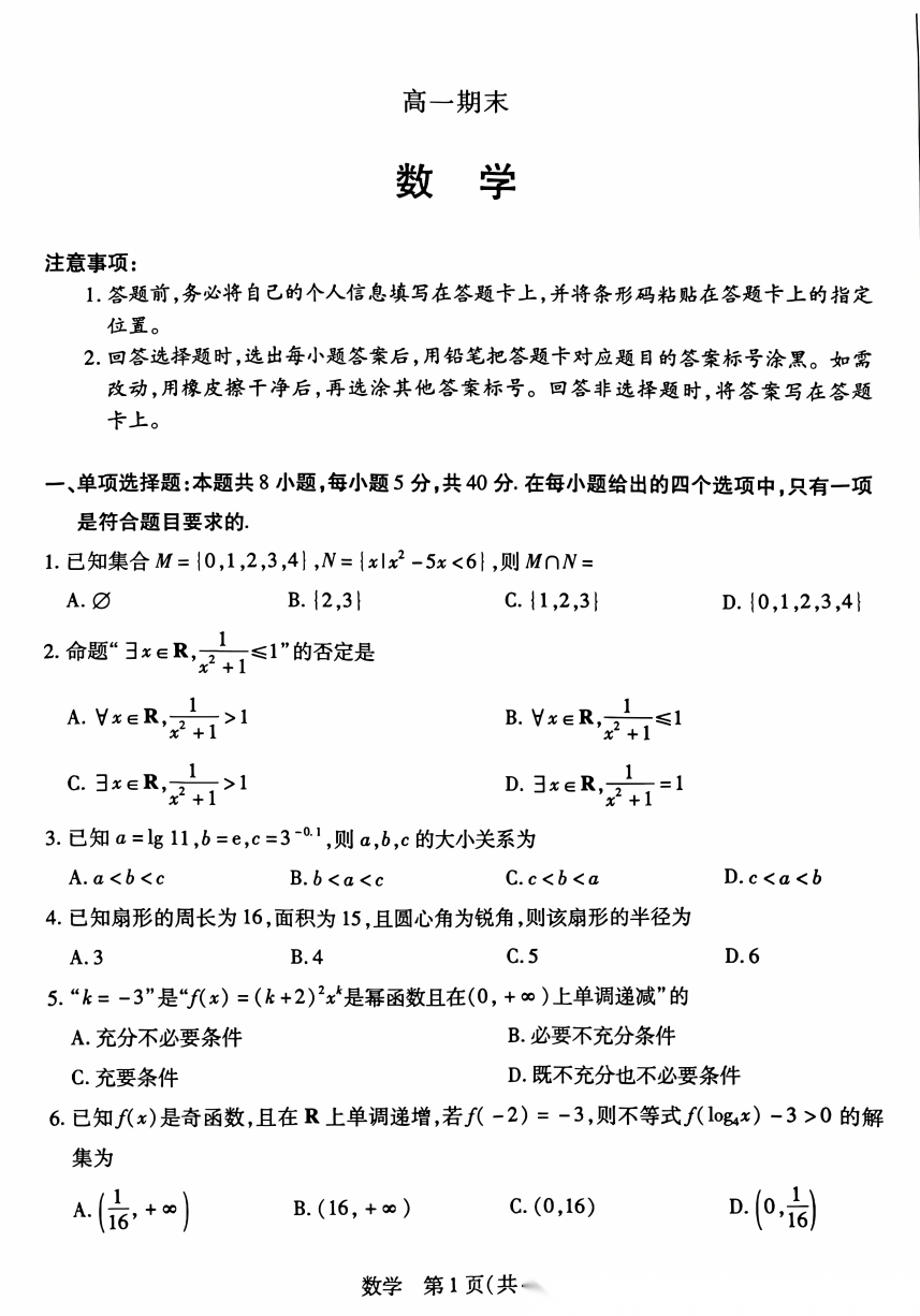 【西北卷】【山西卷】【高一】山西省多校2025-2026学年高一上学期1月月考(1.9-1.10) 全科试卷+答案 【西北卷】【山西卷】【高一】山西省多校2025-2026学年高一上学期1月月考(1.9-1.10) ...