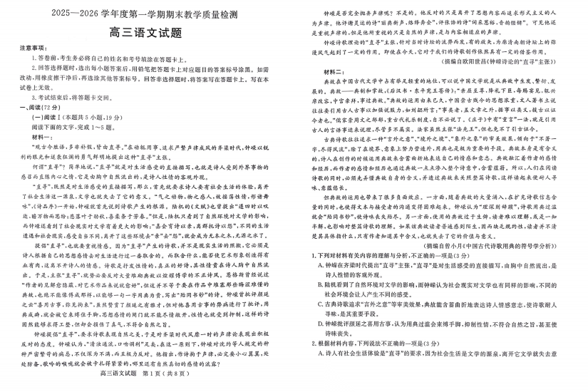 【湖北卷】湖北省圆创联盟2026届高三年级上学期2月期末联考考试(2.9-2.10) 全科试题卷+答案 【湖北卷】湖北省圆创联盟2026届高三年级上学期2月期末联考考试(2.9-2.10) ...