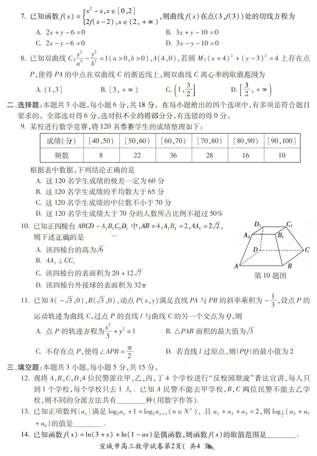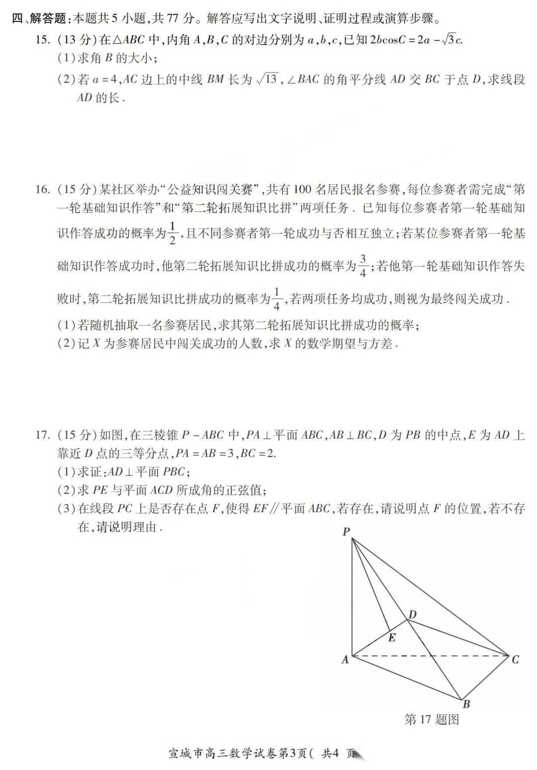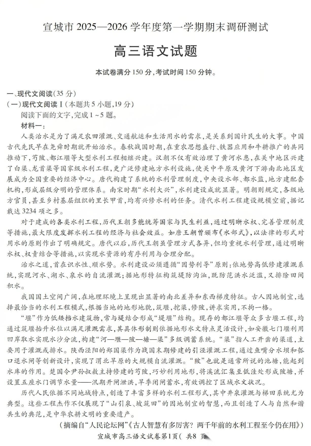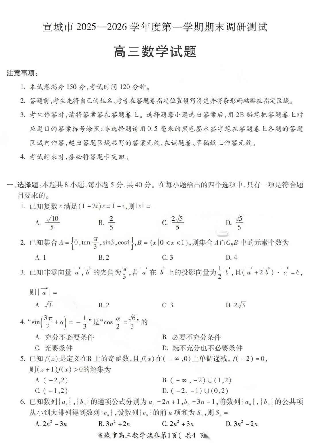 【安徽卷】安徽省宣城市2025-2026学年度第一学期高三年级期末调研测试(2.8-2.9) 全科试卷(缺英语)+答案