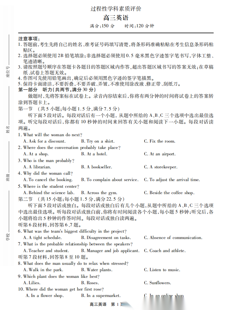 【四川卷】【高一】四川省遂宁市高2028届高一年级上学期期末教学质量监测考试(1.28-1.30) 全科试卷(无史地)+答案 【四川卷】【高一】四川省遂宁市高2028届高一年级上学期期末教学质量监测考试(1.28-1.30) 全科试卷(无...