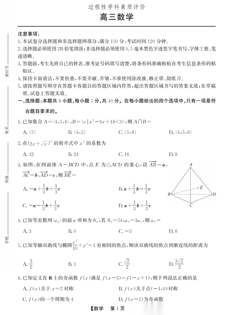 【湖北卷】湖北省圆创联盟2026届高三年级上学期2月期末联考考试(2.9-2.10) 全科试题卷(四选二稍后补充)+答案 【湖北卷】湖北省圆创联盟2026届高三年级上学期2月期末联考考试(2.9-2.10) ...