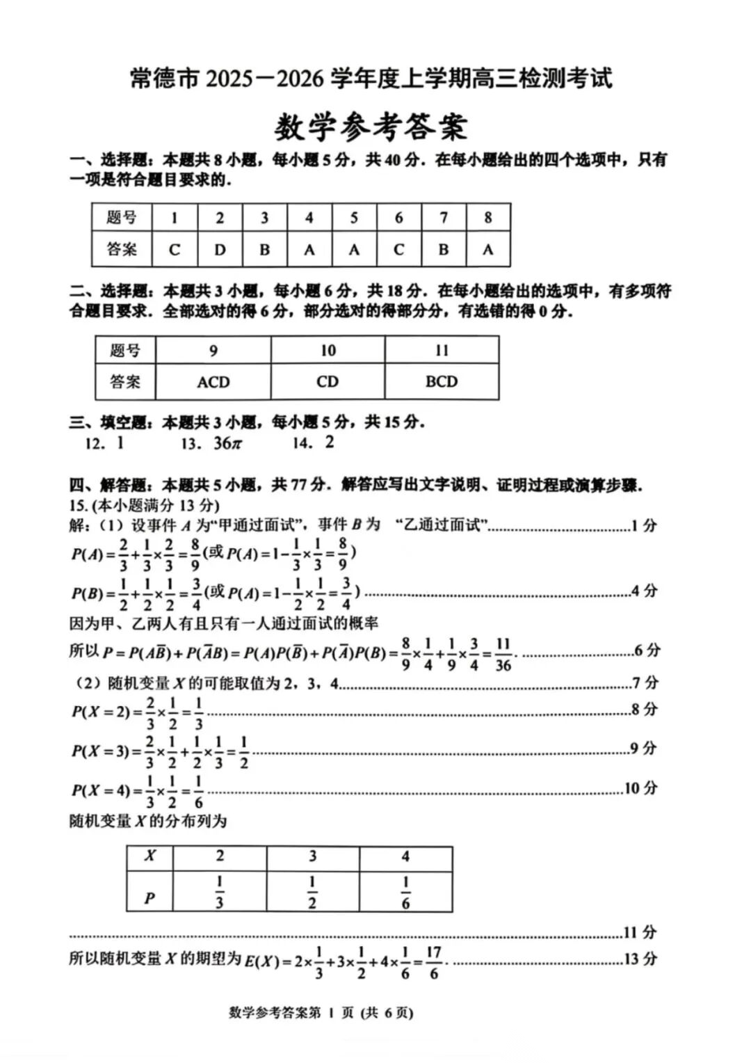 【全科】湖南省常德市2025-2026学年度上学期2月高三检测考试(一模)