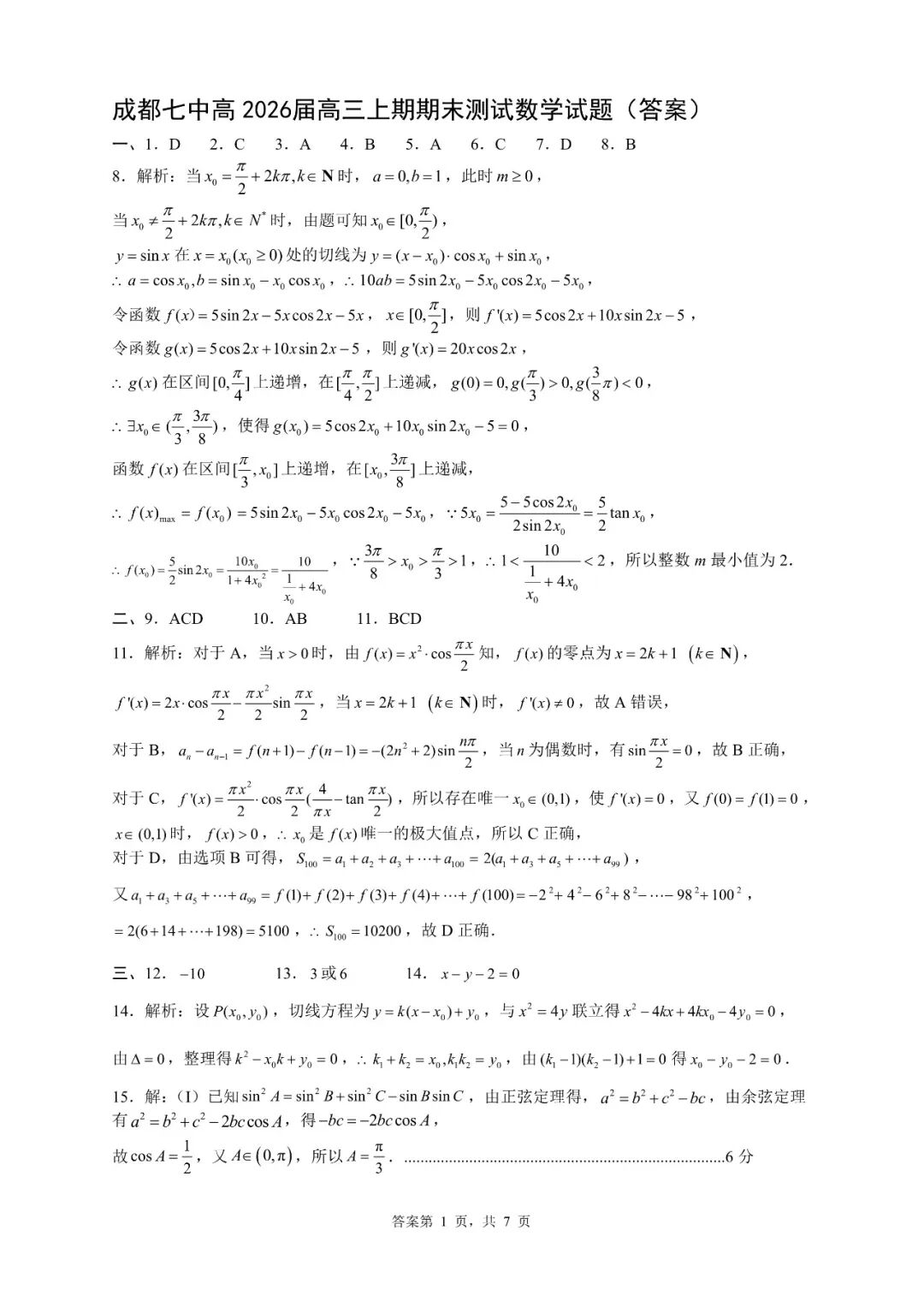 【全科】四川省成都市第七中学2025—2026学年度上期高2026届期末考试