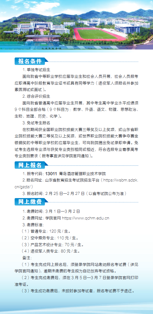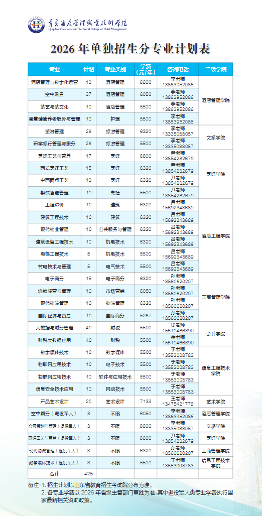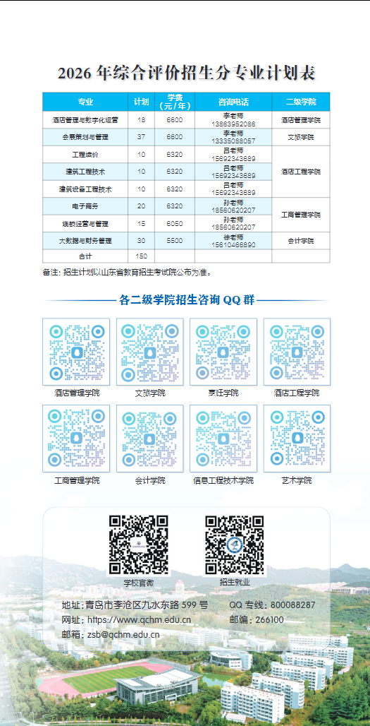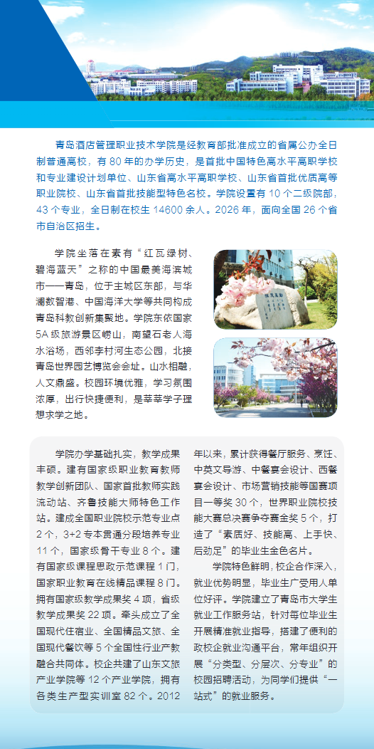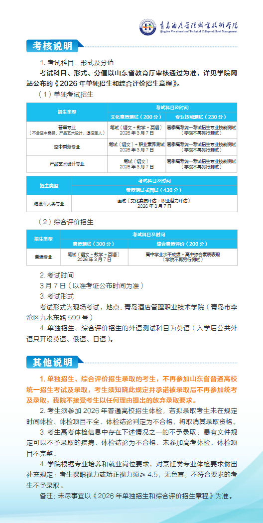 青岛酒店管理职业技术学院2026年单独考试招生和综合评价招生简章