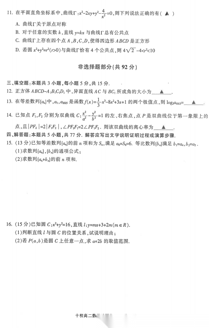 【线上联考】【星火赛】2026 年“神算杯”第一次模拟考试(2月13日15点-17点) 数学试题卷+答题卡+答案 【线上联考】【星火赛】2026 年“神算杯”第一次模拟考试(2月13日15点-17点) 数学试题...