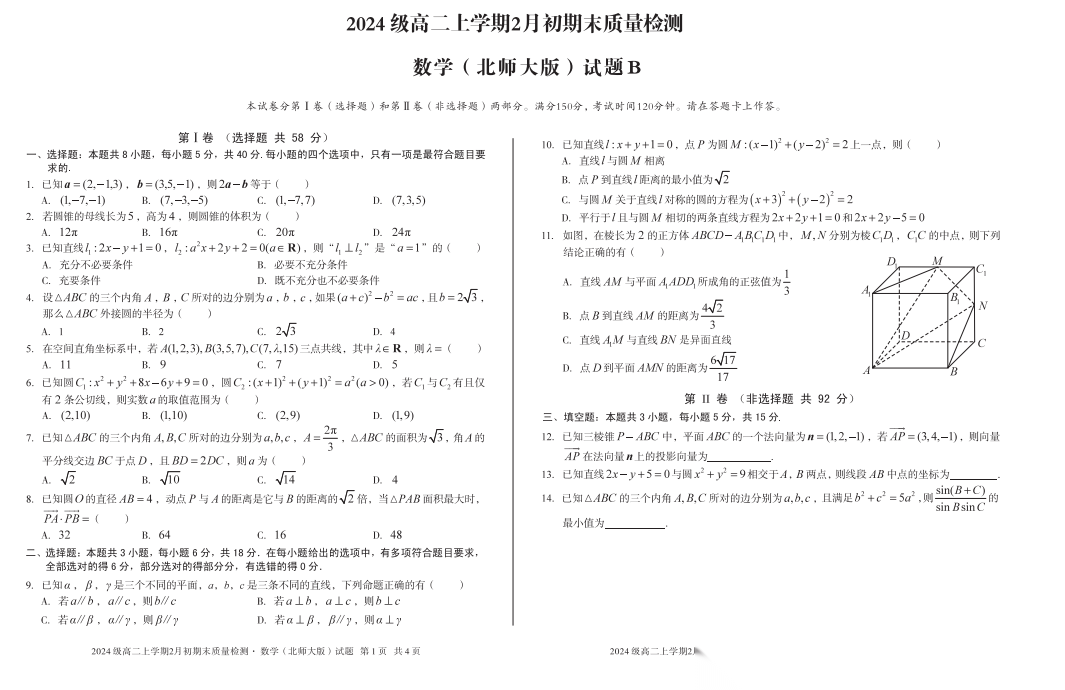 【广西卷】【高二】广西壮族自治区北海市2025年秋季学期高二年级期末教学质量检测考试(2.4-2.6) 全科试卷+答案 【广西卷】【高二】广西壮族自治区北海市2025年秋季学期高二年级期末教学质量检测考试(2.4-2.6) ...