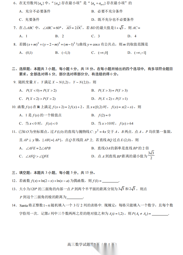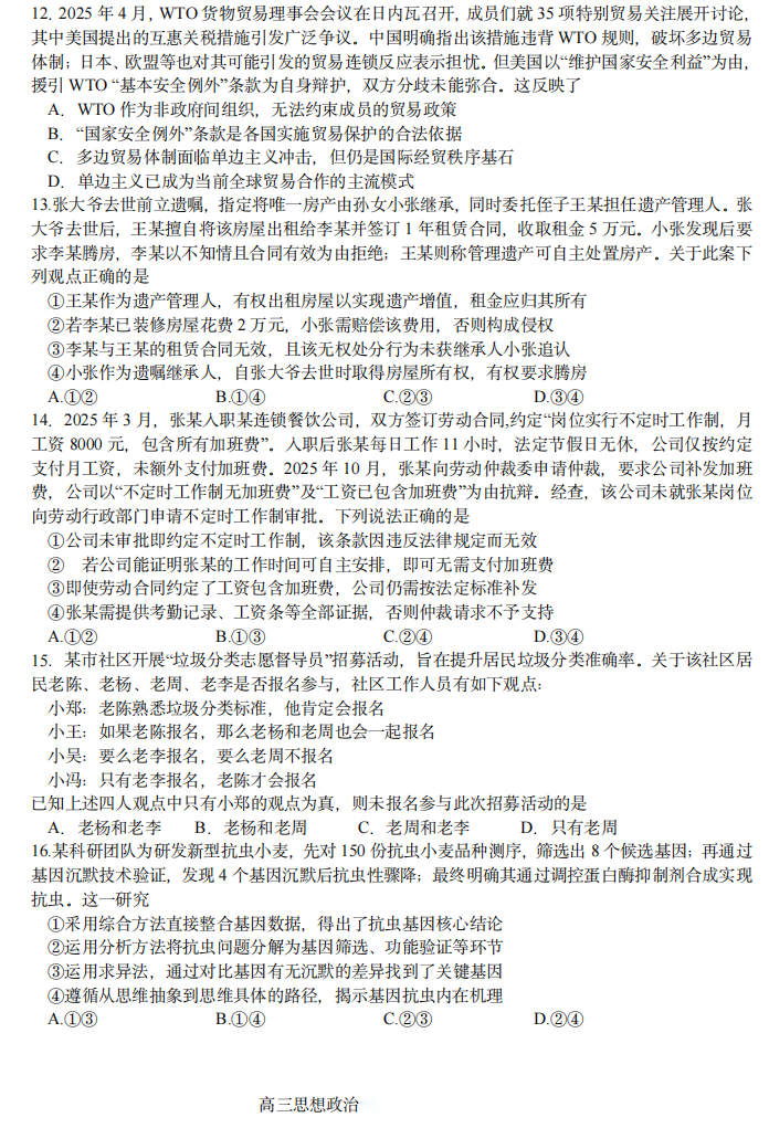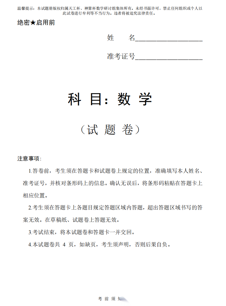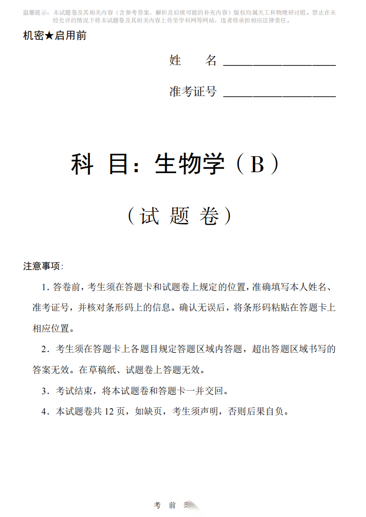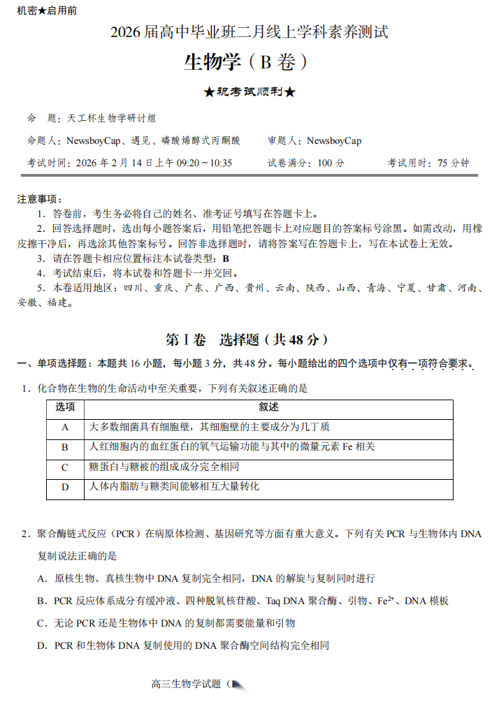 【线上联考】【天工杯赛】【全科目】2026 届高三年级“天工杯”2 月线上学科能力测试(2.13-2.14)全科试题卷+答题卡(2.15公布 答案与解析)