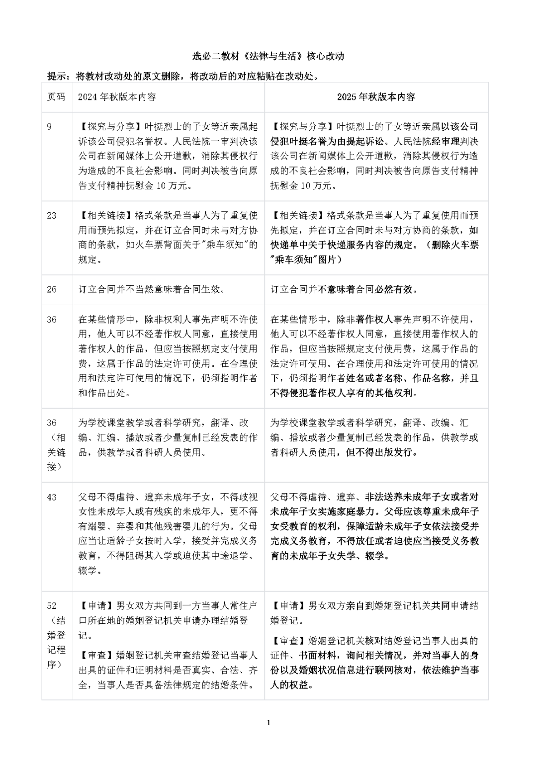 选必二《法律与生活》教材核心改动(附下载)