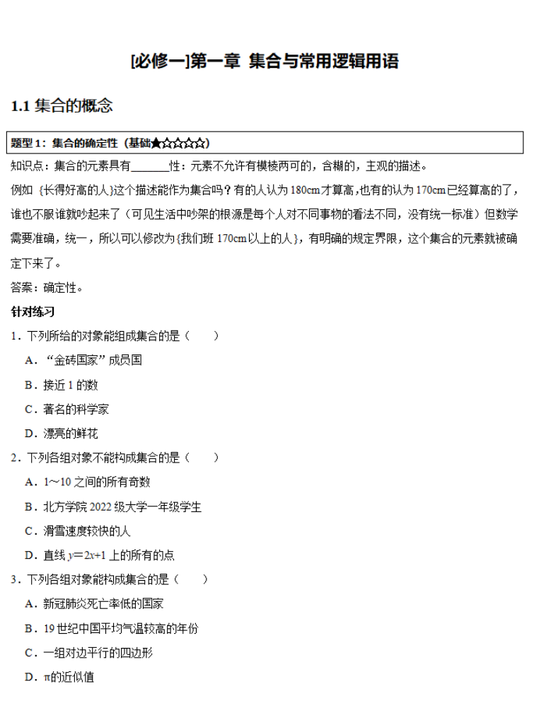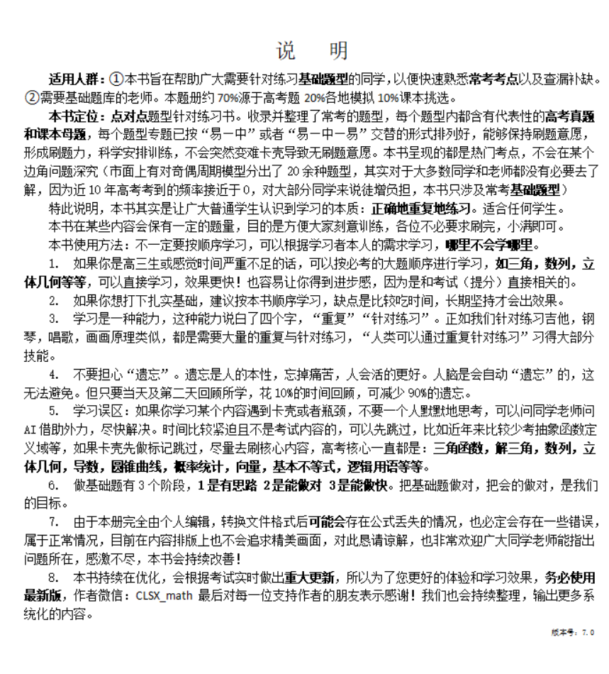 【高考数学】2026高考数学全基础题型(基于刻意训练研发,把简单的事做到极致) (适合110分以下的同学)学生手册(501页)+答案手册(336页)