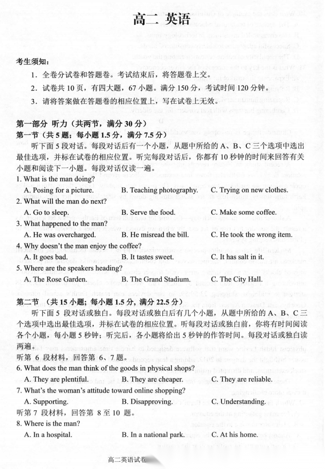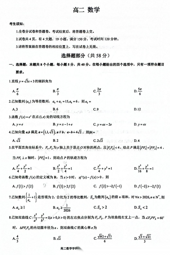 【西北卷】【山西卷】【高二】山西省晋中市2026年2月高二年级期末调研测试(2.5-2.6) 全科试卷(含日语俄语)+答案 【西北卷】【山西卷】【高二】山西省晋中市2026年2月高二年级期末调研测试(2.5-2.6) ...