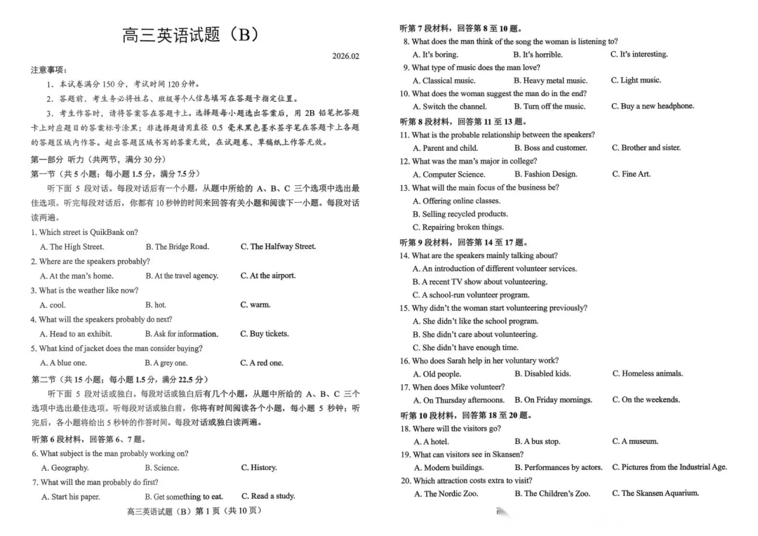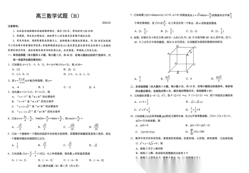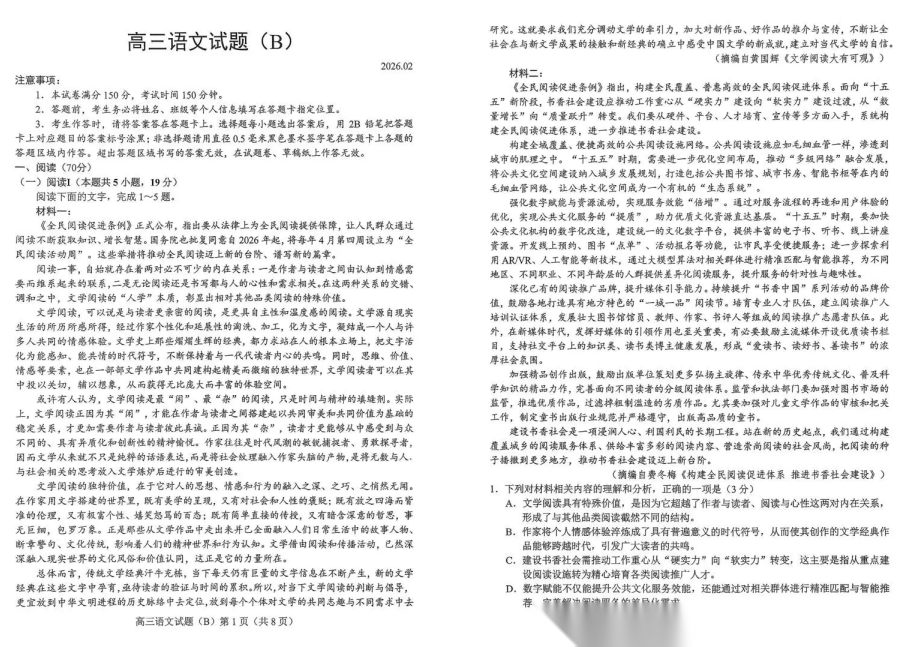 【山东卷】山东省菏泽市2025-2026学年高三年级上学期期末教学质量检测考试(B卷)(2.11--2.13) 全科试卷(缺化学)+答案