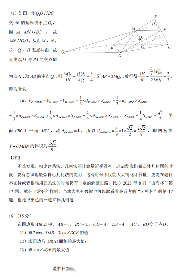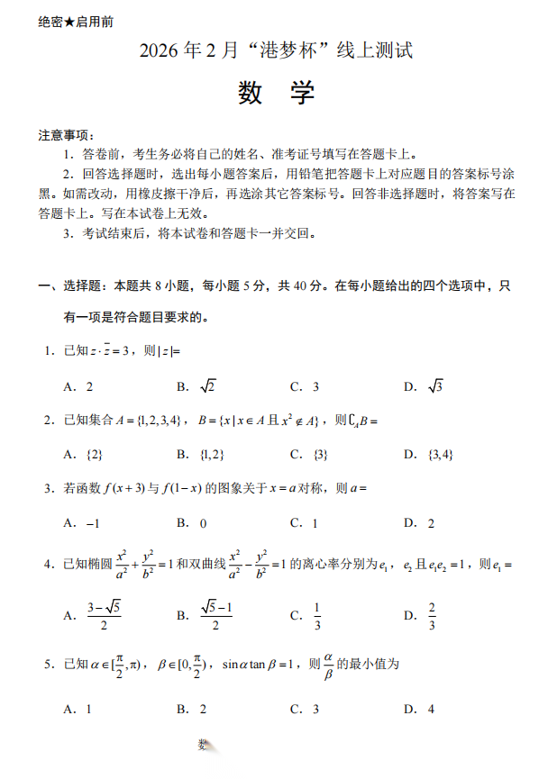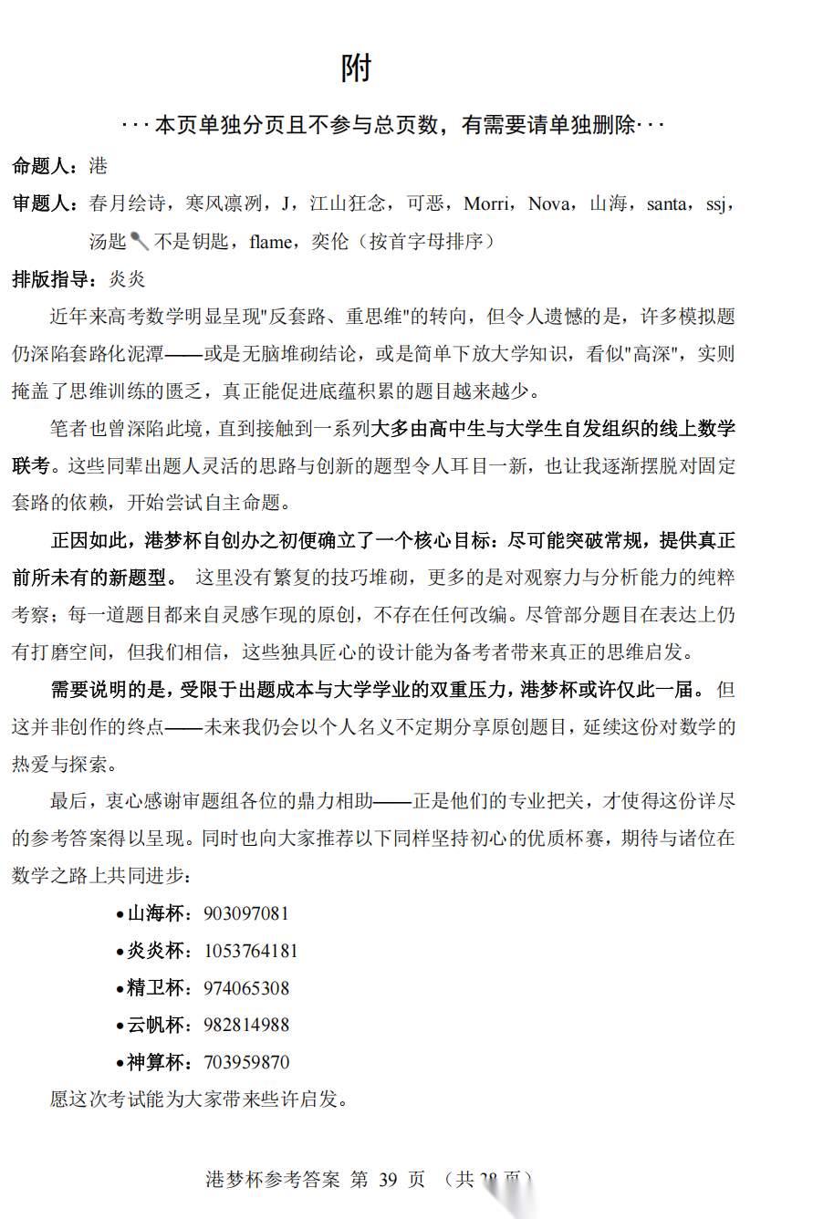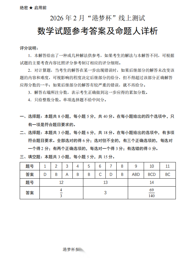 【线上联考】【北大大神原创打造】【港梦杯赛】2026 年 2 月“港梦杯”线上测试(2月18日9点-12点)数学试题卷+极致的一题多法的命题人解析