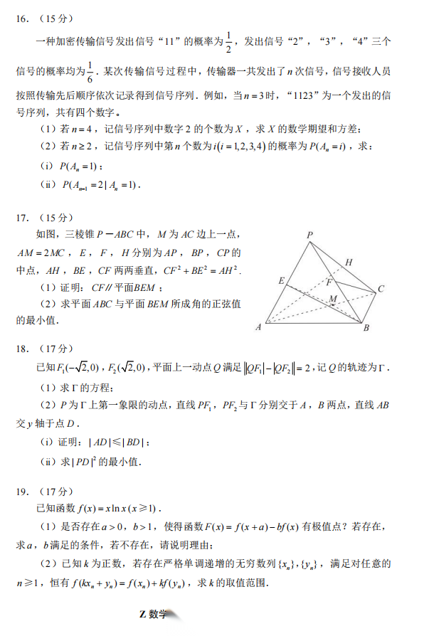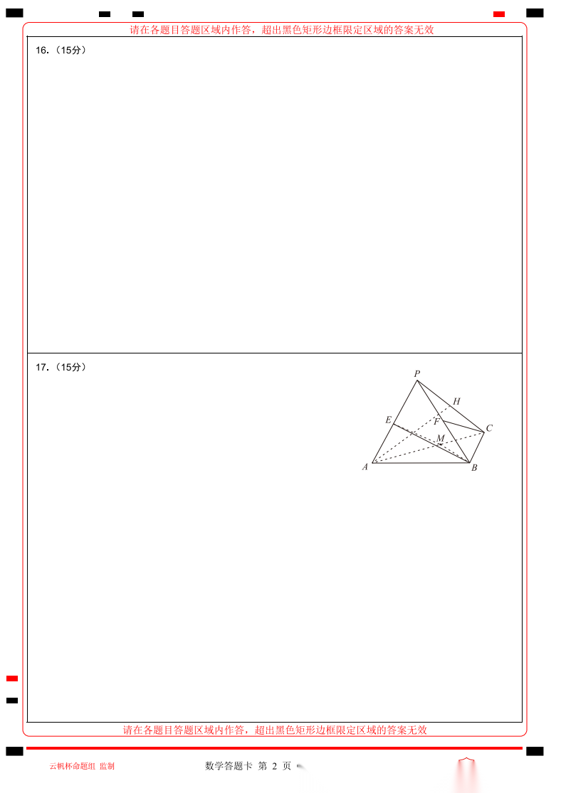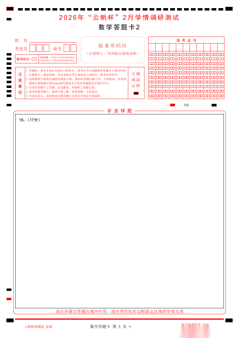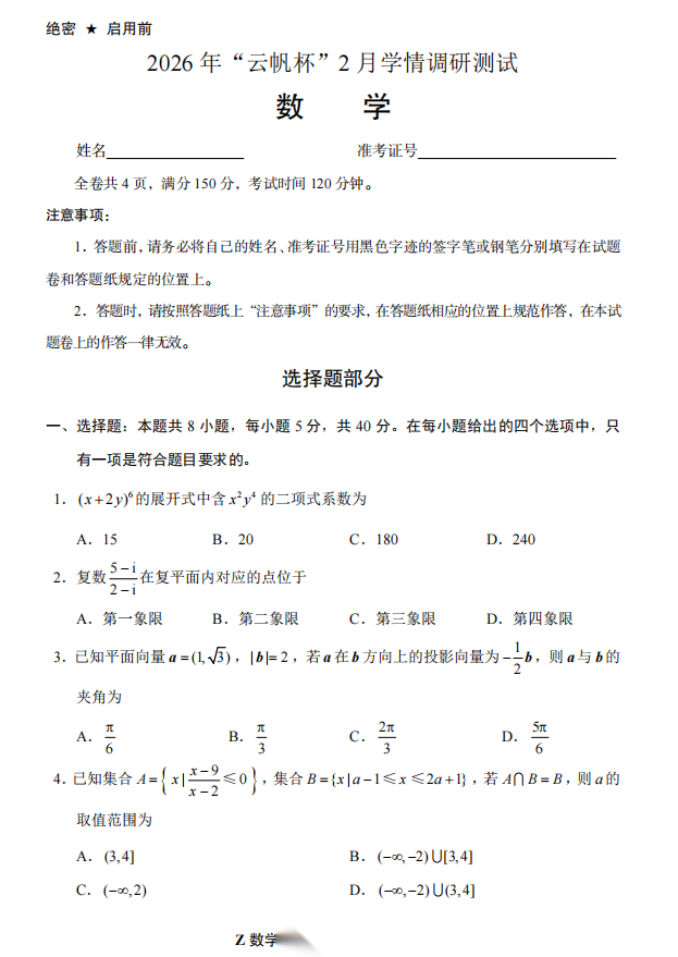 【浙江卷】【线上联考】【云帆杯赛】2026 年“云帆杯”2 月学情调研测试(B卷)(2月18日19点-21点) 数学试题卷+答题卡+最后的谢