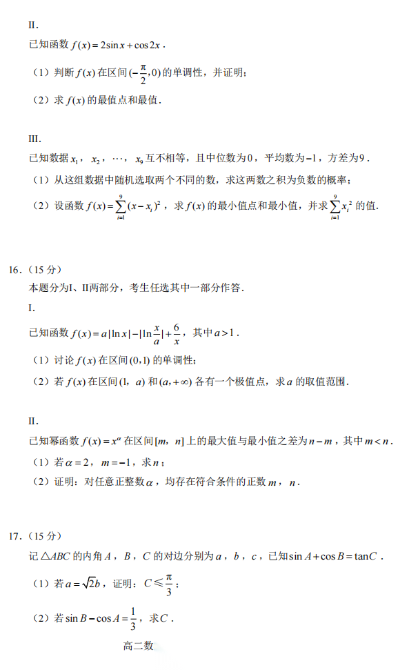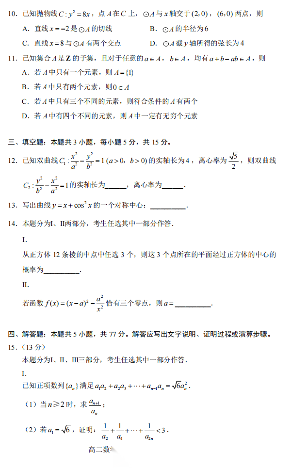 【高二】【线上联考】【数研杯赛】2026 年冬季“数研杯”高中数学研讨会高二年级模拟考试(2月19日15点-17点) 数学试题卷