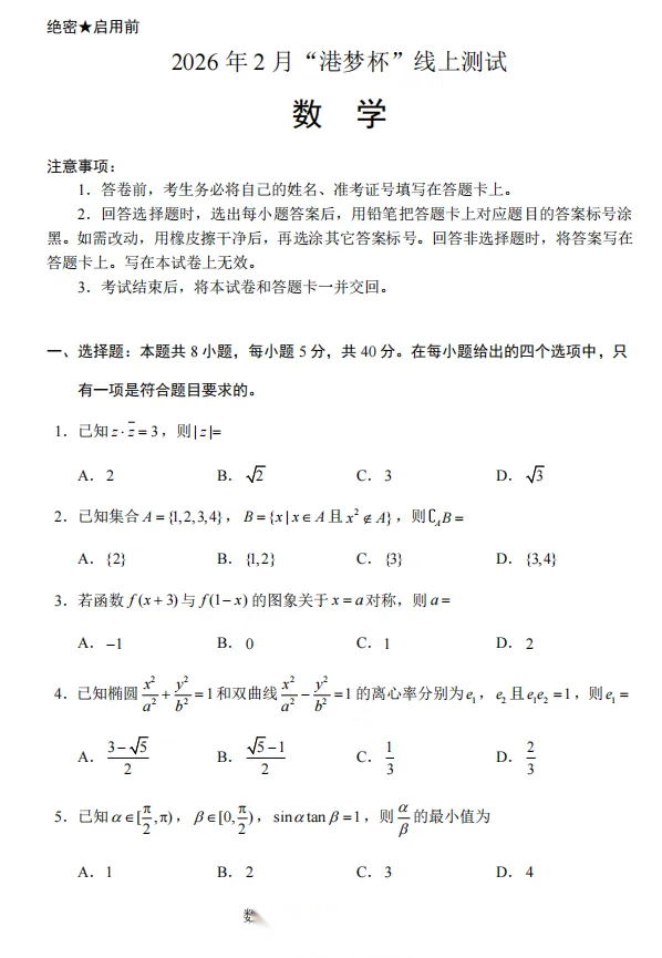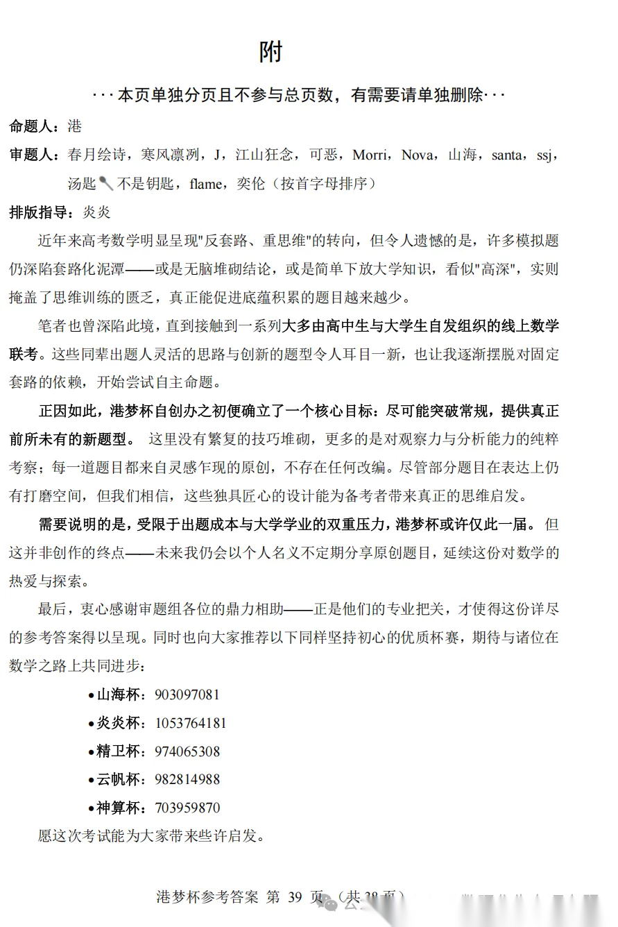 【命题组原创视频精讲】【港梦杯赛】2026 年 2 月“港梦杯”线上测试(2月18日9点-12点)数学试题卷命题审题组团队精讲解析视频