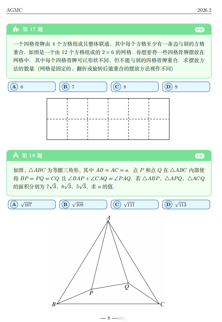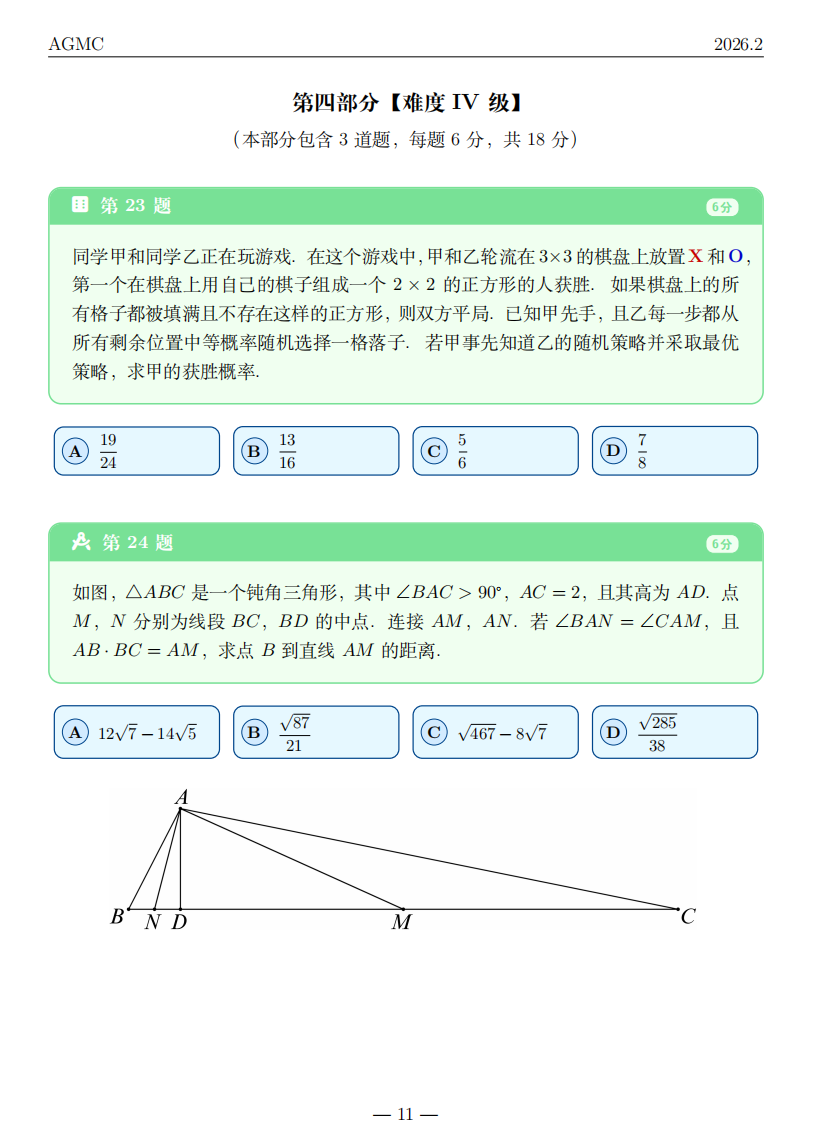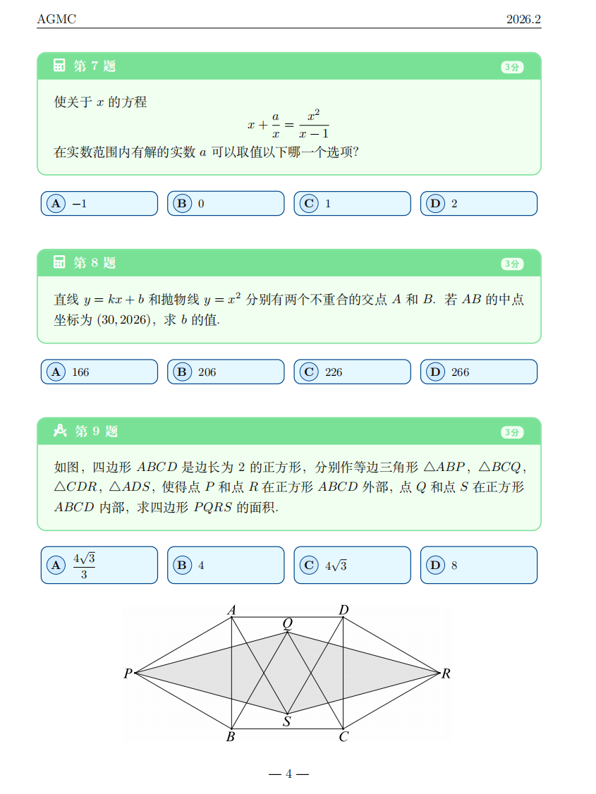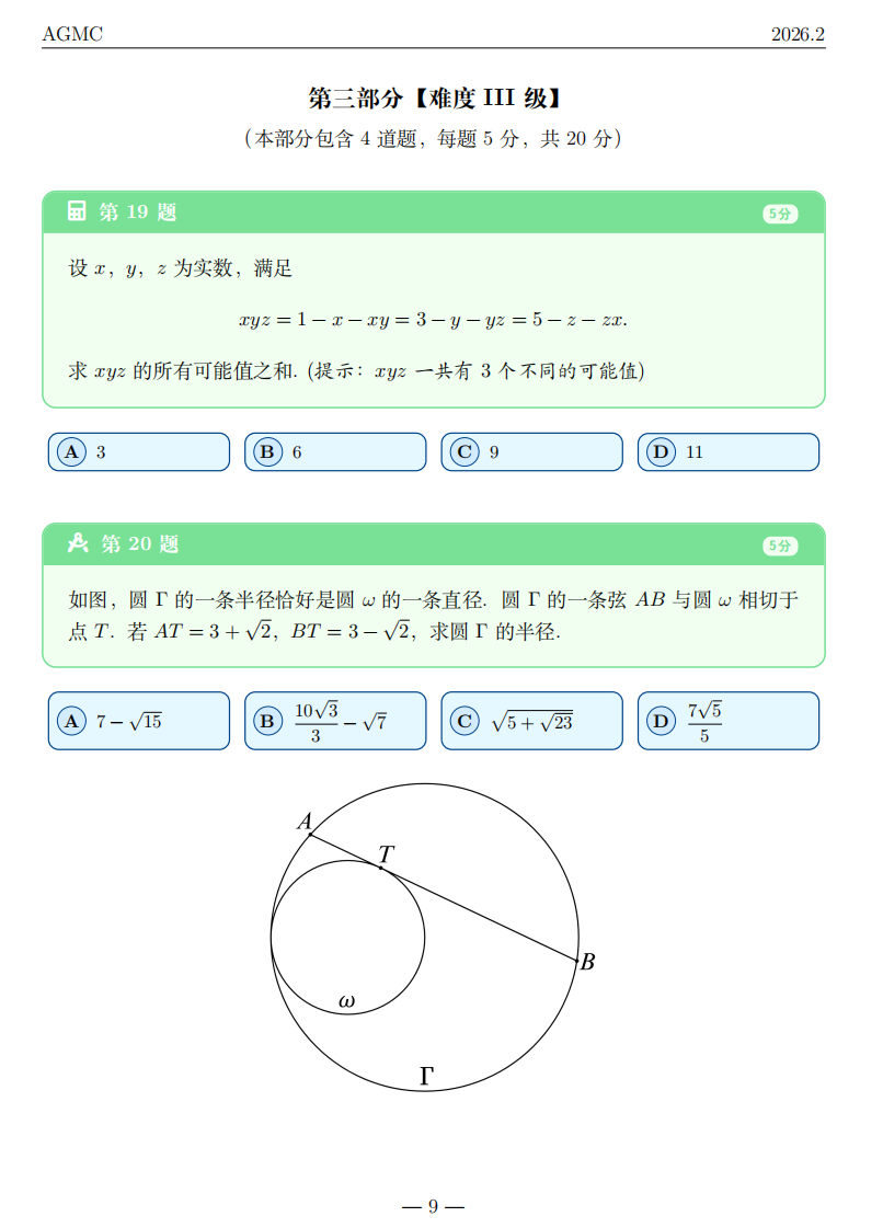【线上数竞联考】【AGMC联赛】第五届AGMC数学竞赛个人赛·初中组(2月20日13点-15点) 数学试题卷+答案解析