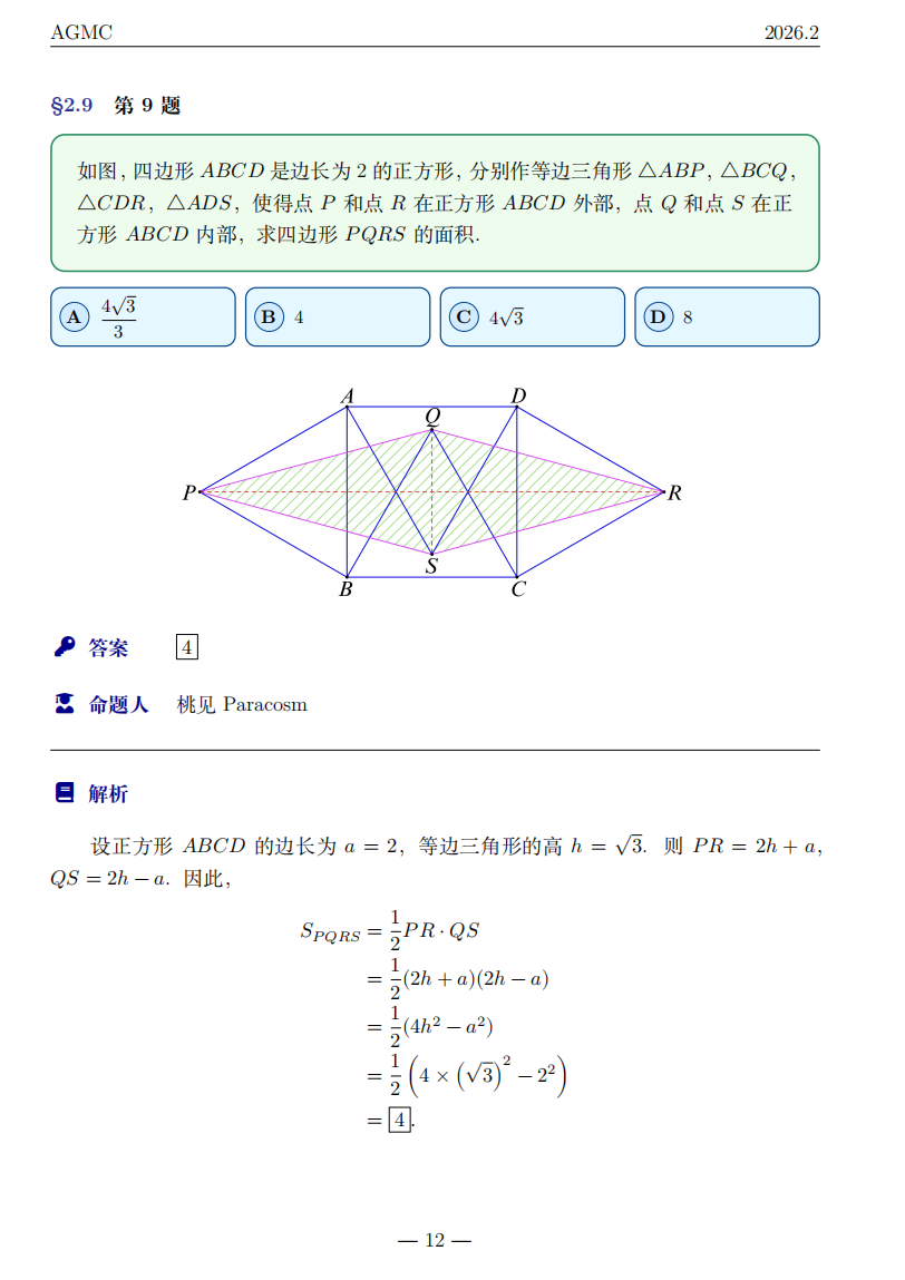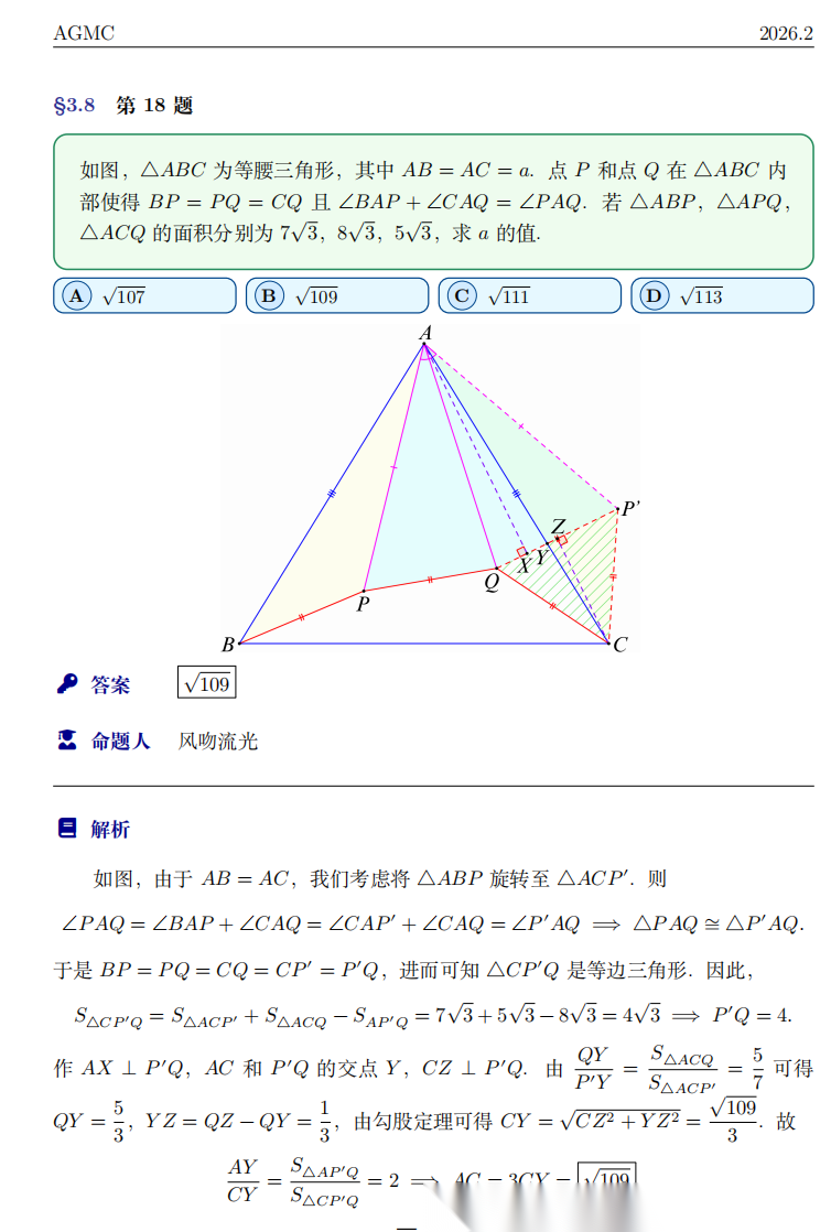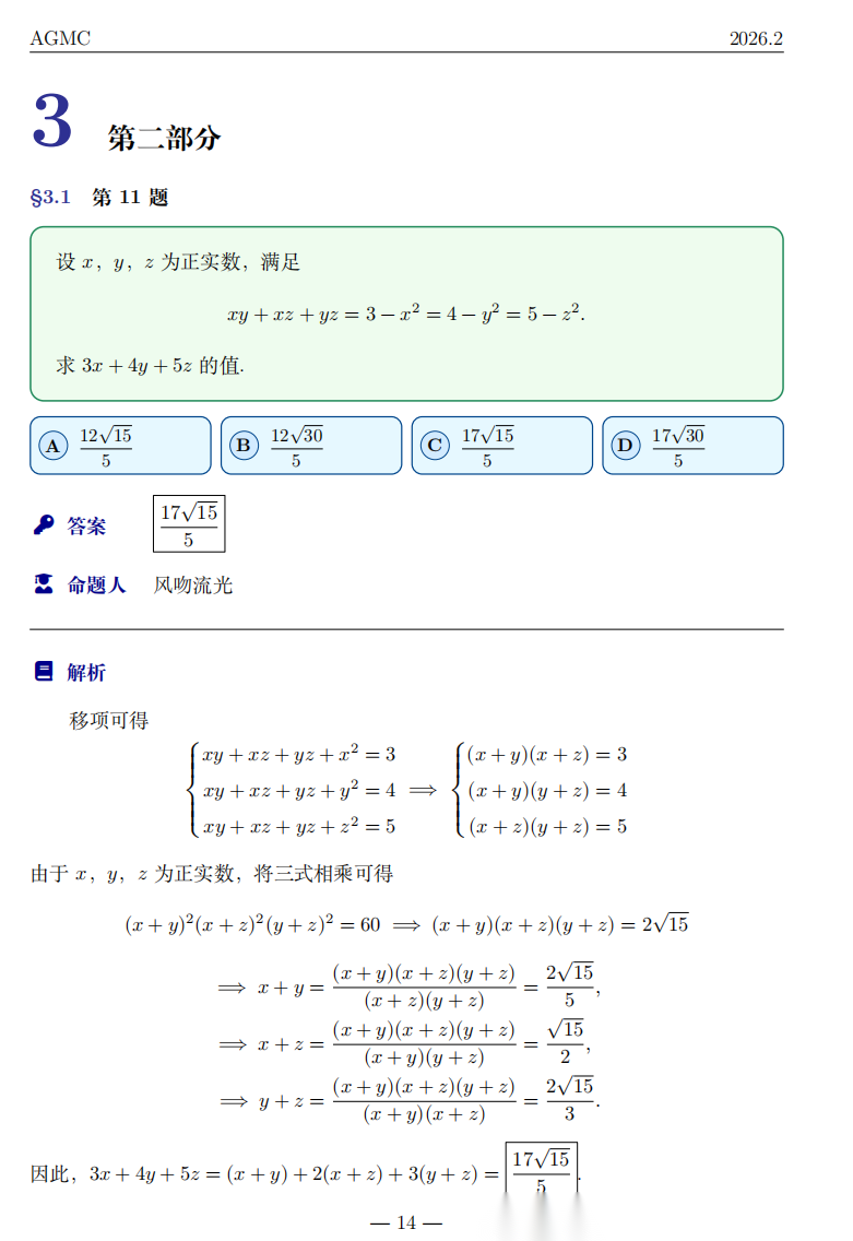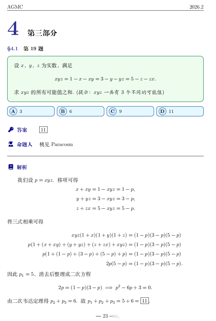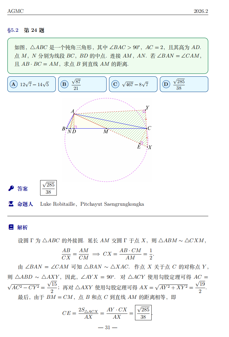 【线上数竞联考】【AGMC联赛】第五届AGMC数学竞赛个人赛·初中组(2月20日13点-15点) 数学试题卷+答案解析