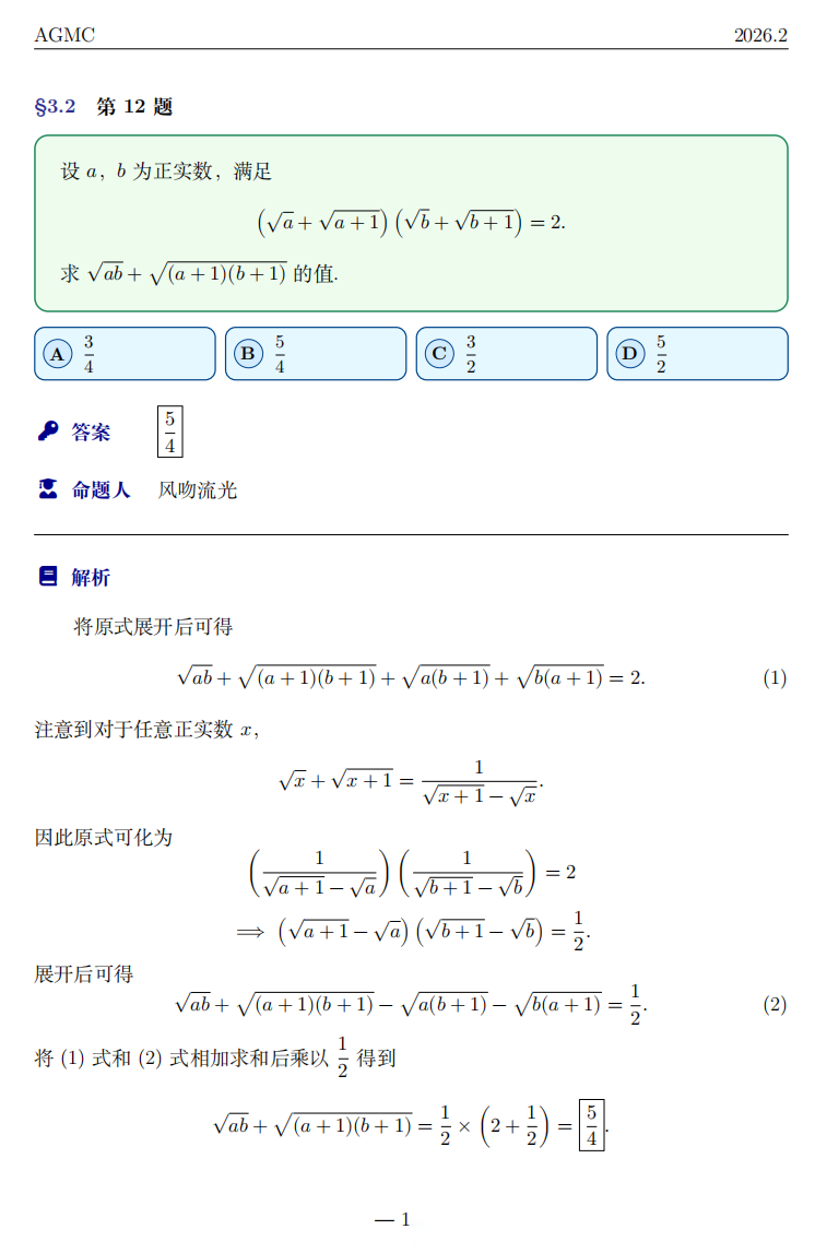 【线上联考】【鸽子杯赛】2026 年2月“鸽子杯”线上测试(2月2日19点-21点) 数学试题卷+答题卡 【线上联考】【鸽子杯赛】2026 年2月“鸽子杯”线上测试(2月2日19点-21点) 数学试题卷...