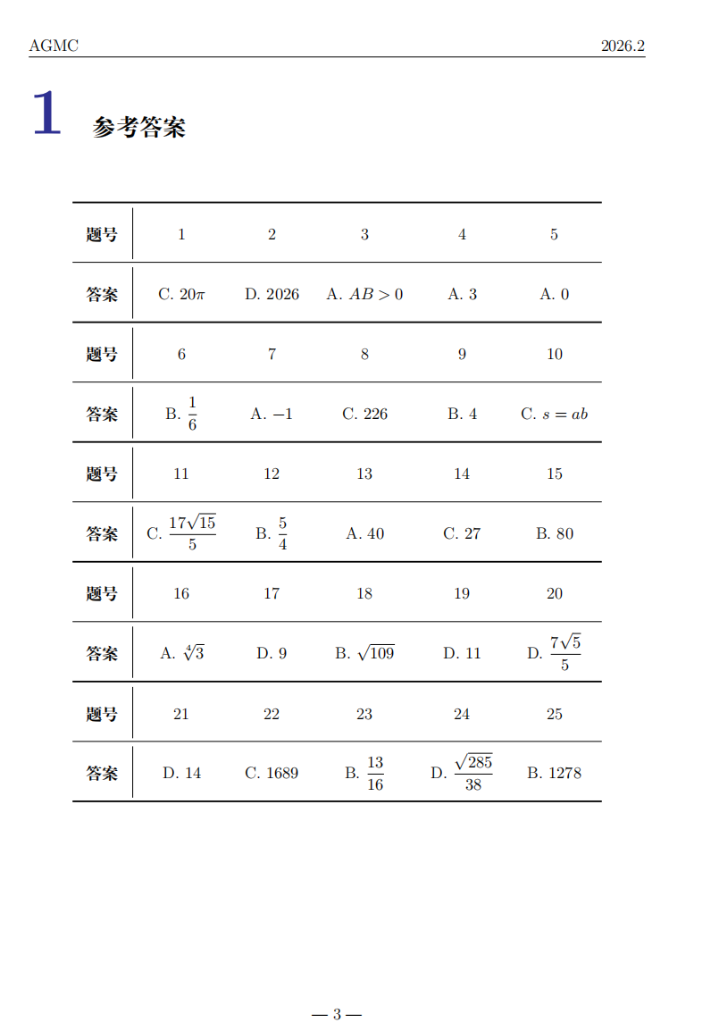 【线上联考】【奇数杯赛】2026 年2月第三届“奇数杯”线上联考(2月19日9点-11点) 数学试题卷+答题卡+答案解析 【线上联考】【奇数杯赛】2026 年2月第三届“奇数杯”线上联考(2月19日9点-11点) 数学试题卷+答...