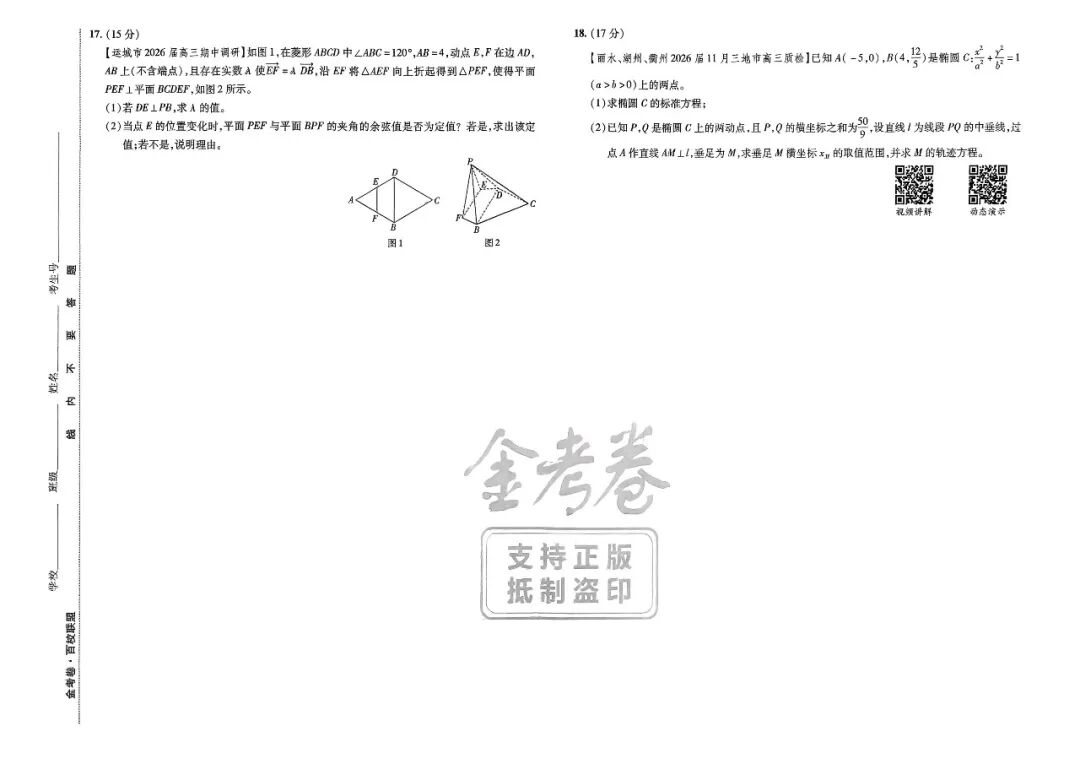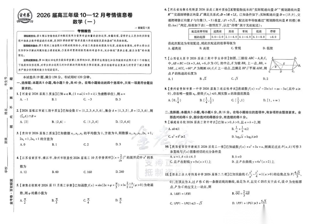 【线上联考】【汇才杯赛】2026 年全国“汇才杯”高中线上学情评价区域调研(第一届))2月18日14点-16点) 数学试题卷+答题卡 【线上联考】【汇才杯赛】2026 年全国“汇才杯”高中线上学情评价区域调研(第一届))2月18日14点-16点) ...