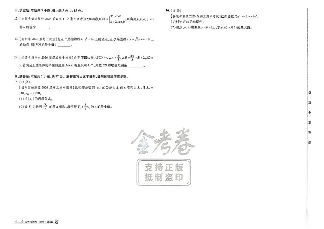【线上联考】【数研杯赛】2026 年冬季“数研杯”高中数学研讨会高三年级模拟考试(2月19日19点-21点) 数学试题卷+参考答案 【线上联考】【数研杯赛】2026 年冬季“数研杯”高中数学研讨会高三年级模拟考试(2月19日19点-21点) ...