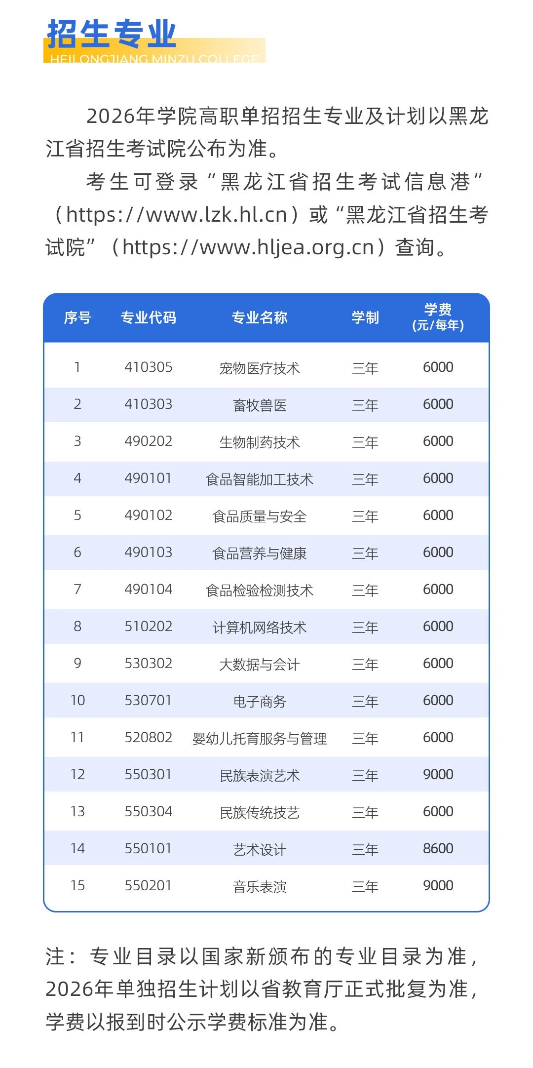 黑龙江民族职业学院2026年单独招生章程