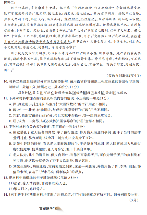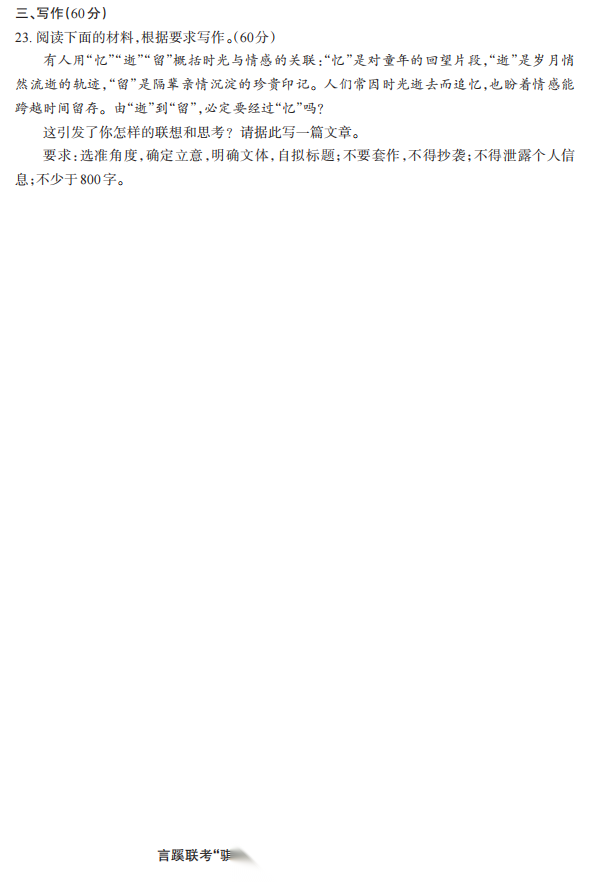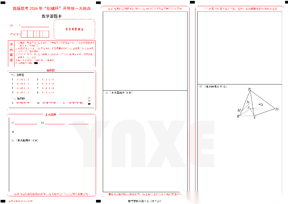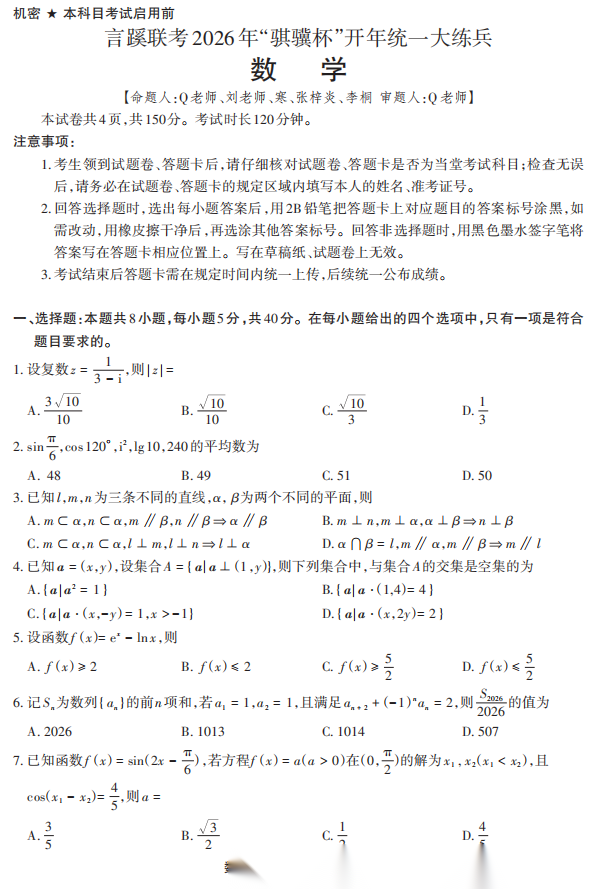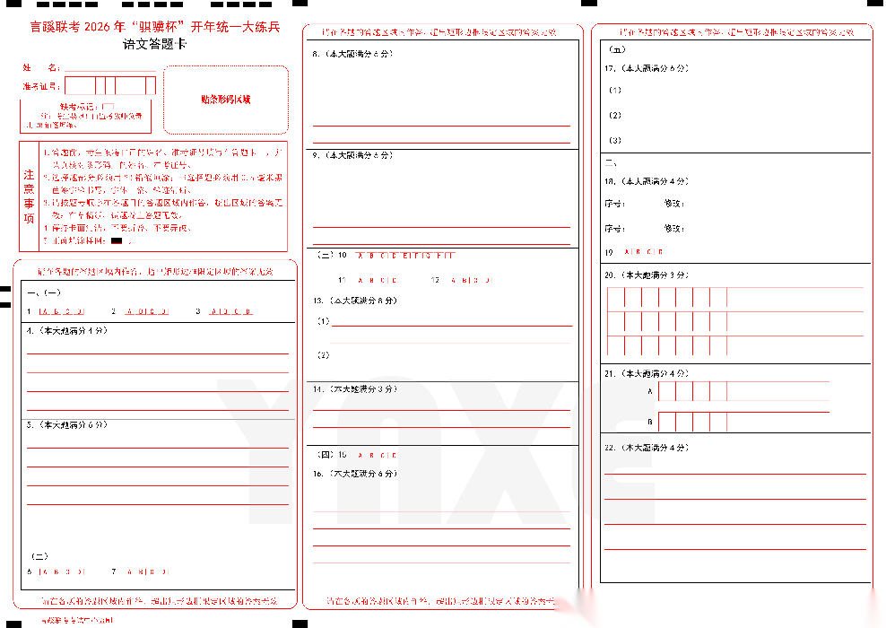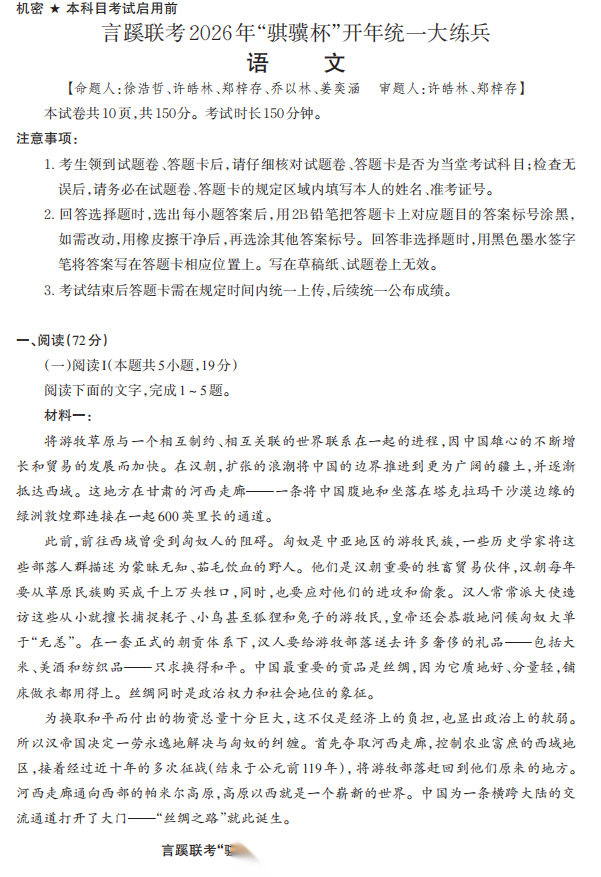 【线上全科目联考】【言蹊联考"骐骥杯"杯赛】言蹊联考2026年“骐骥杯”开年统一大练兵(2月23-2月25日) 数学语文试题卷+答题卡