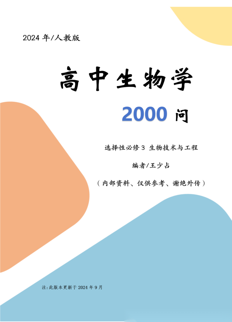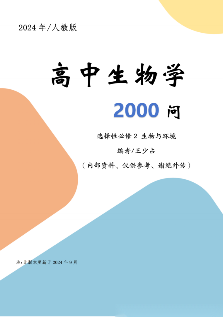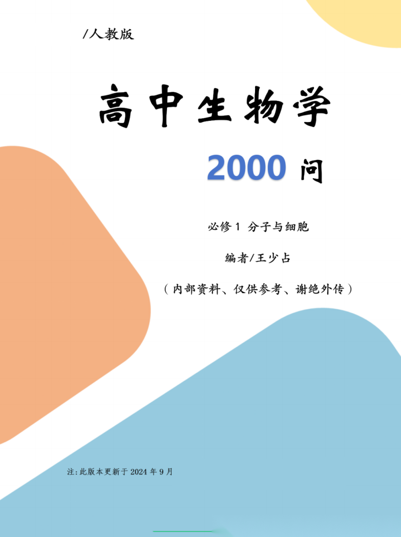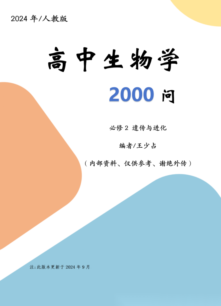 【高中生物】【内部资料】【王少占老师原创】高中生物学2000问-必修一二+选修一二三(人教版)(2024年9月更新修订)(全套5册完整版)