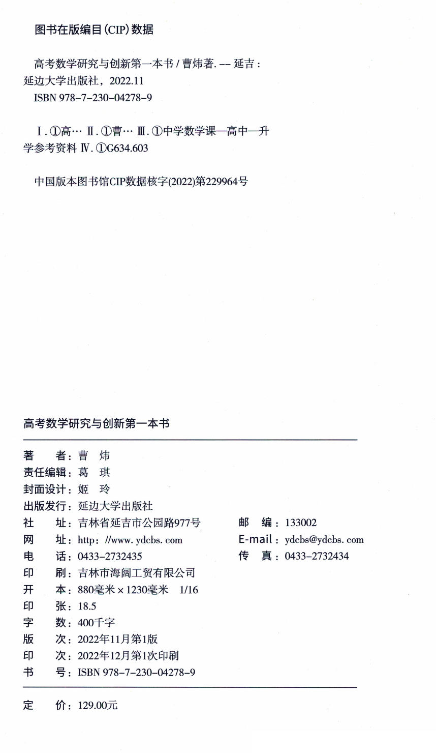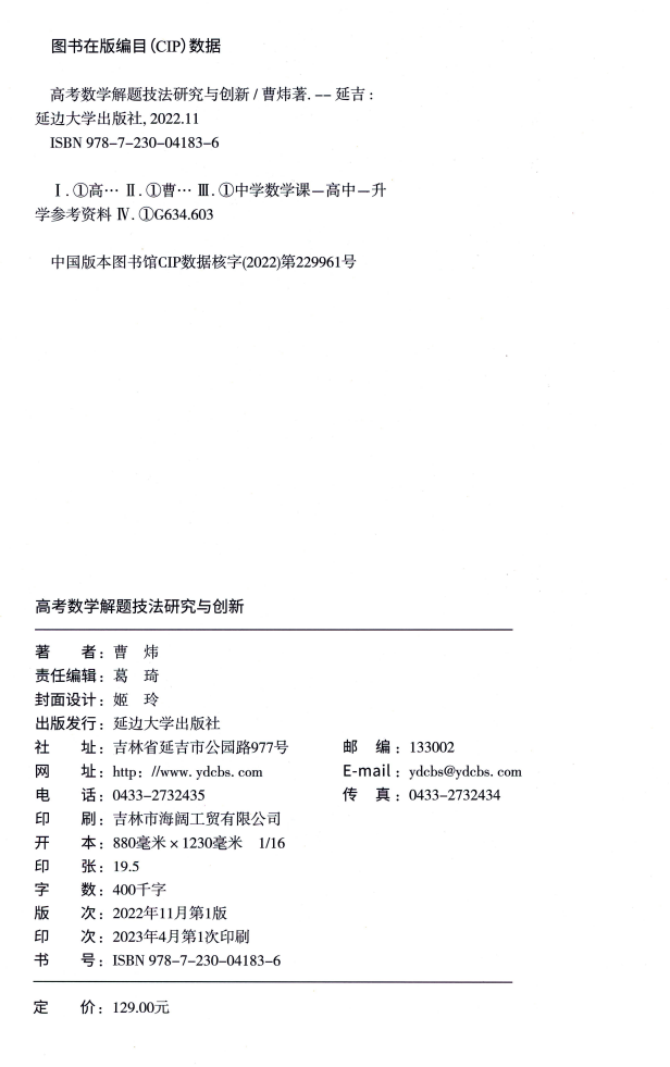 【高考数学】【曹炜老师著】高考数学解题技法研究与创新(313页)+高考数学研究与创新第一步书(297页)(高中生、教师、数学爱好者必备)