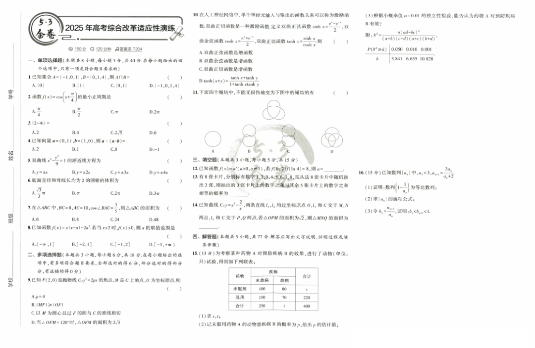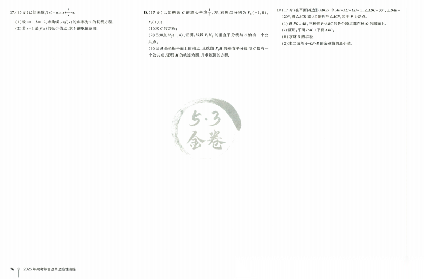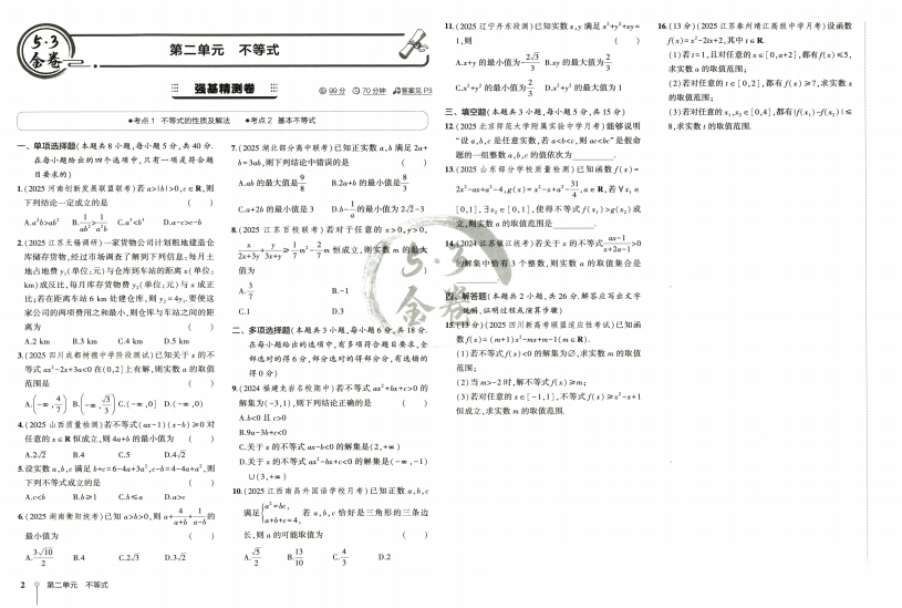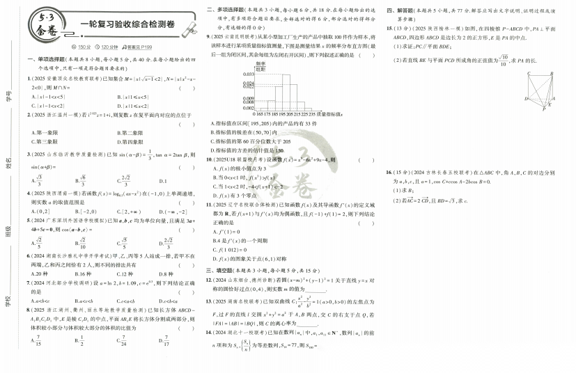 【高考数学】【曲一线教育】五三53金卷2026年高考数学一轮复习53单元突破卷 试题卷(82页)+答案与解析册(210页)(有资料贩子水印)(完整版)