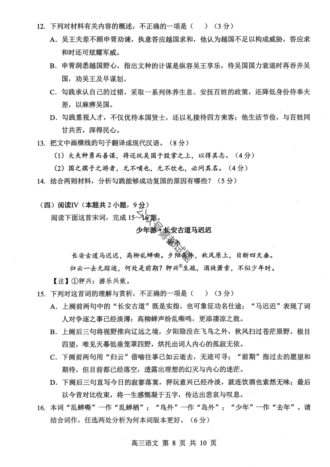 云学联盟2026年高三年级2月阶段训练答案 云学联盟2026年高三年级2月阶段训练答案
