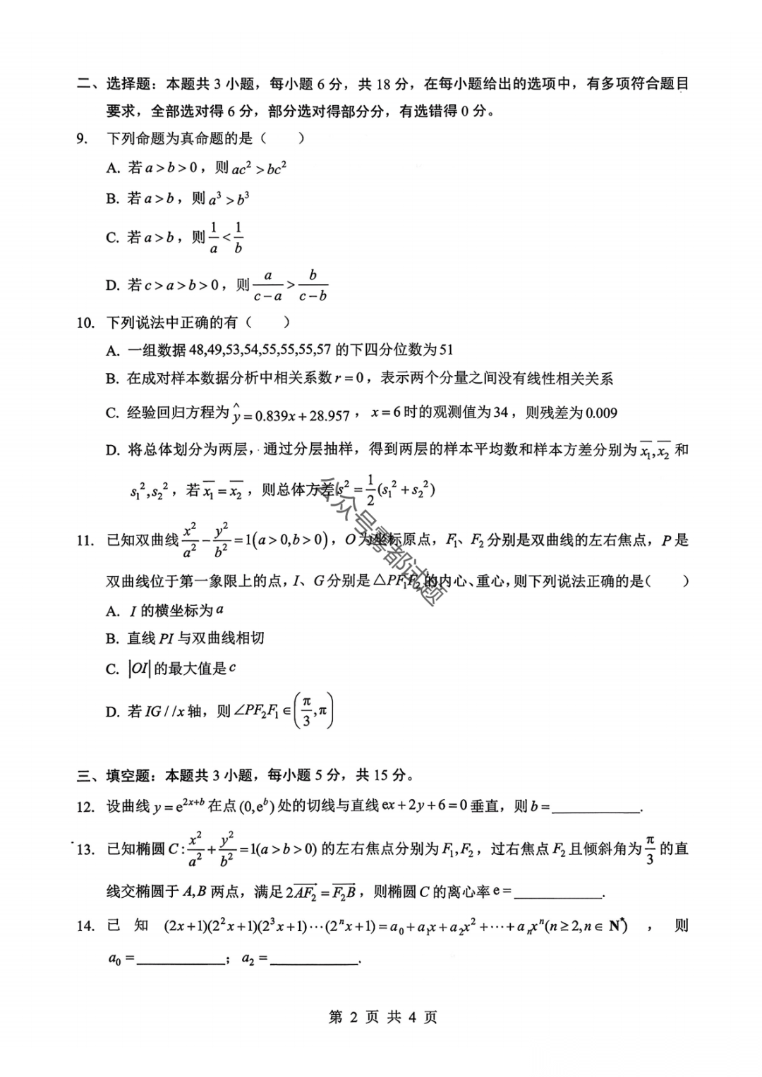 2026届湖北协作体高三2月联考答案 2026届湖北协作体高三2月联考答案
