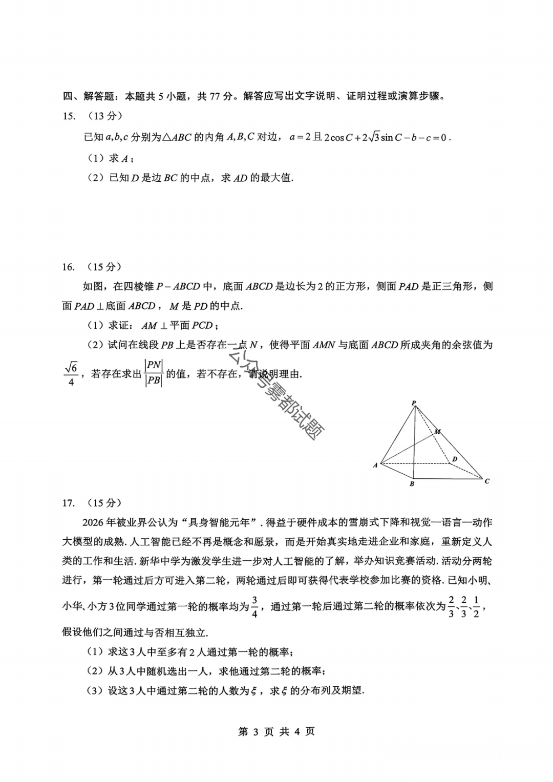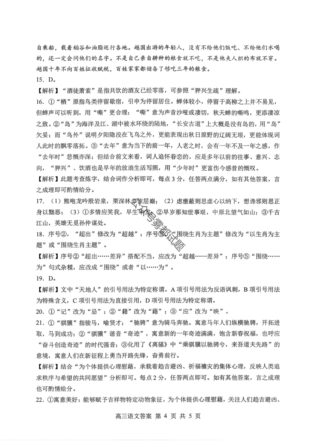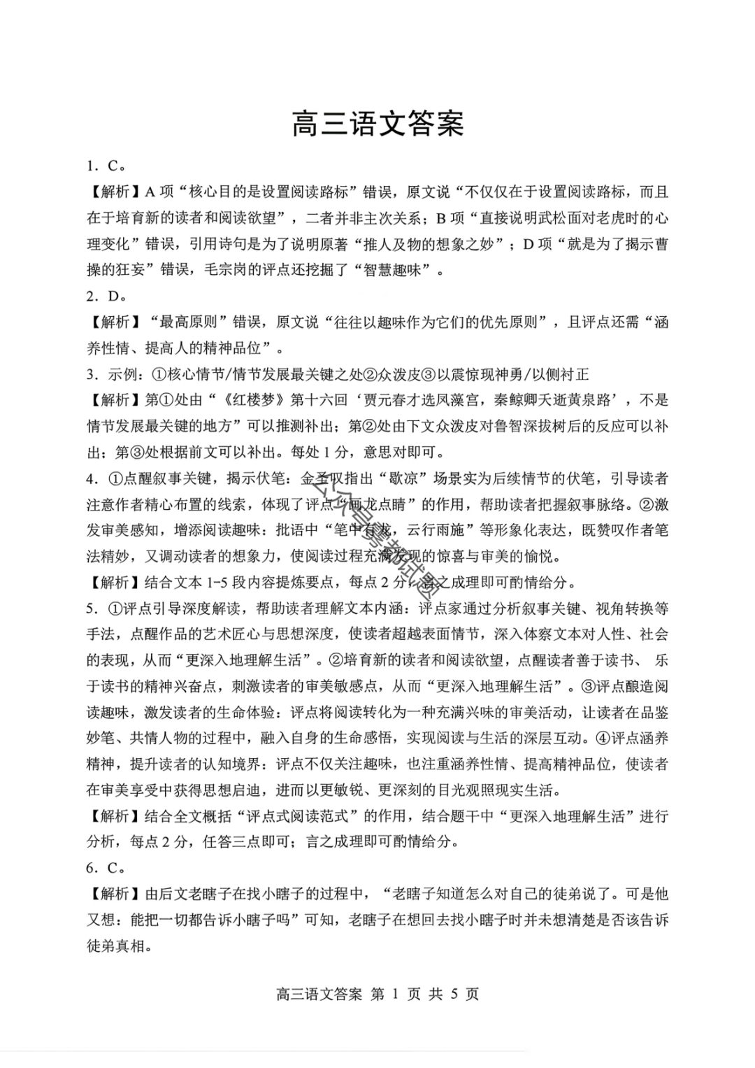 山东名校考试联盟2026年2月高三核心素养评估答案 山东名校考试联盟2026年2月高三核心素养评估答案