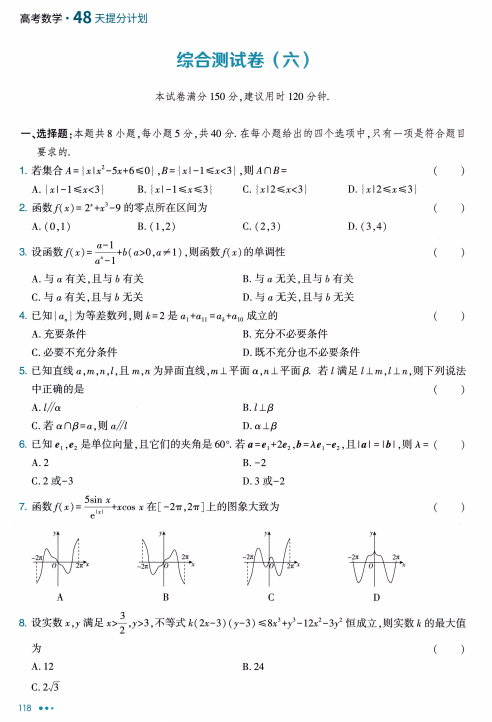 【高考数学】【育甲高考】育甲高考-高考数学8周48天提分计划(48天科学规划限时训练8轮循环巩固针对联系500道典型模拟专题突破)(何帅编著)