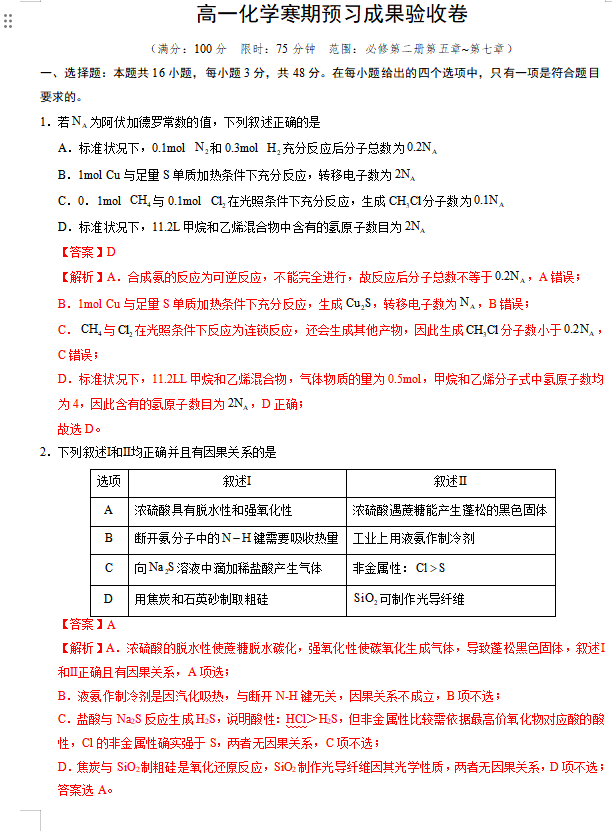 【高一】【高中物理化学英语】【寒假自学课】【上好课】2026版高中高一年级寒假自学课---高一物理化学英语三科上好课系列合集(人教版)