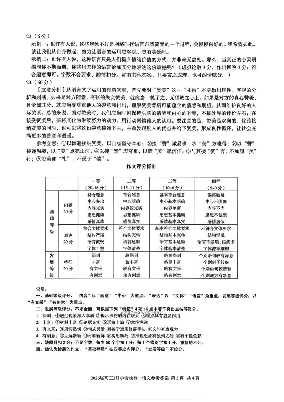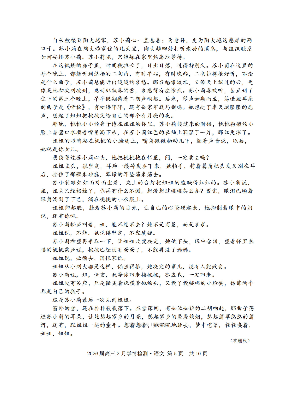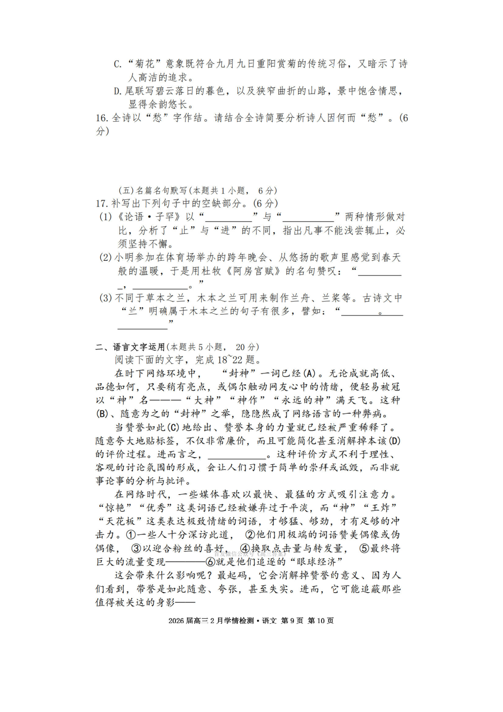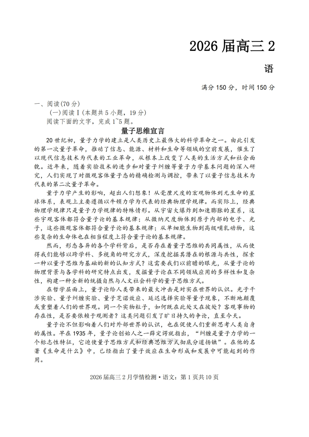 2026年湖北省高三2月检测试卷 2026年湖北省高三2月检测试卷