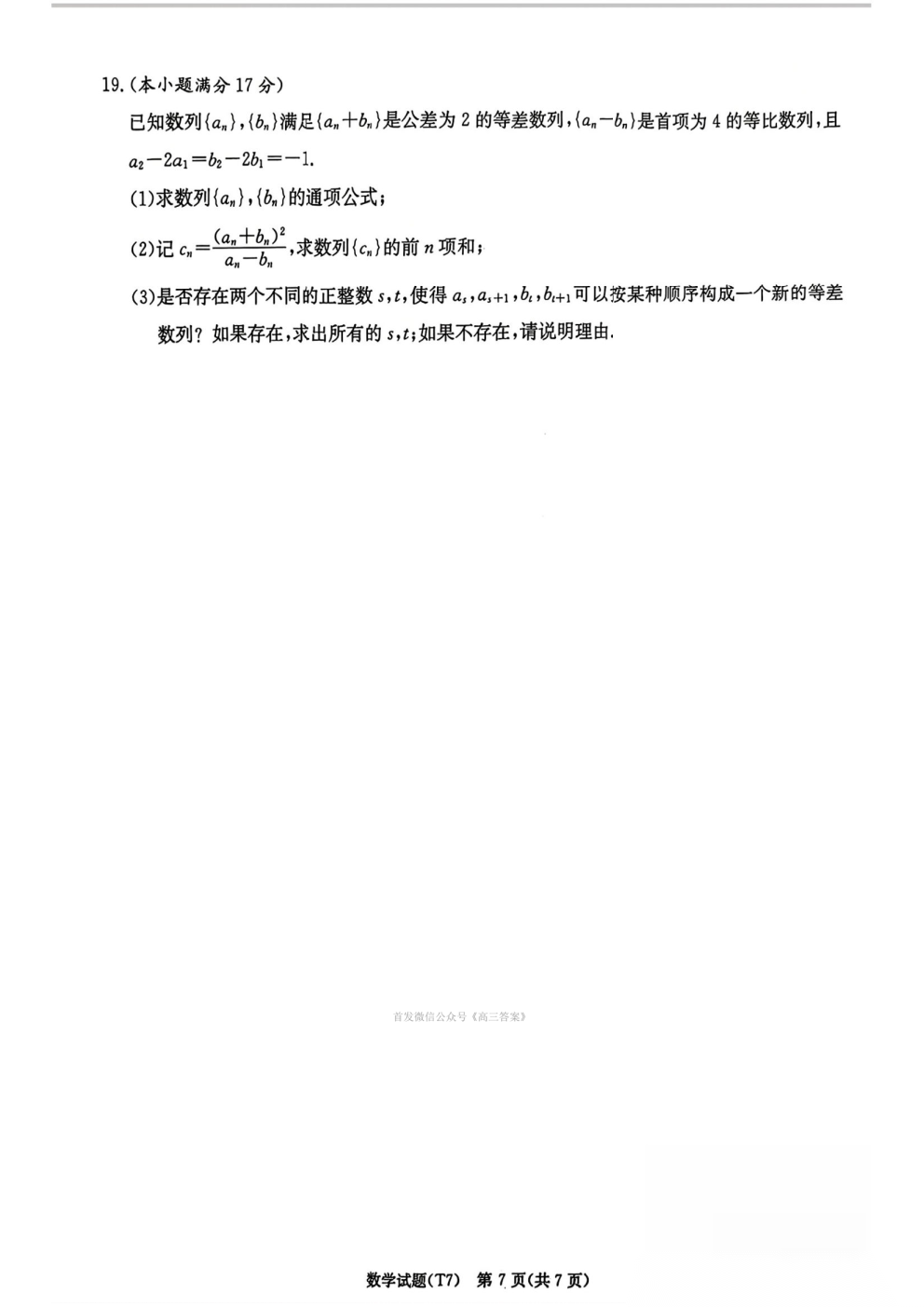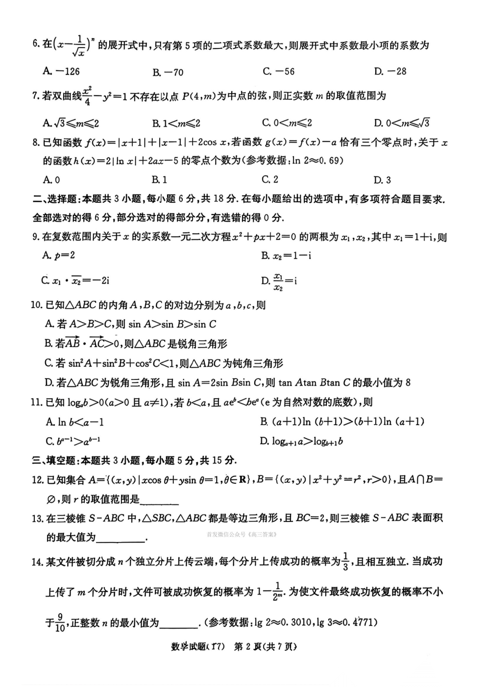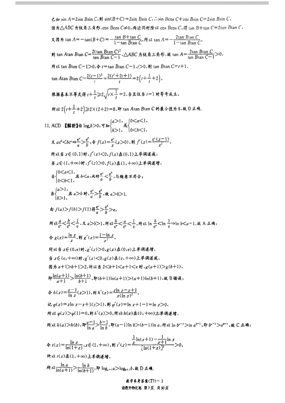 湖南师大附中2026届高三月考试卷七答案