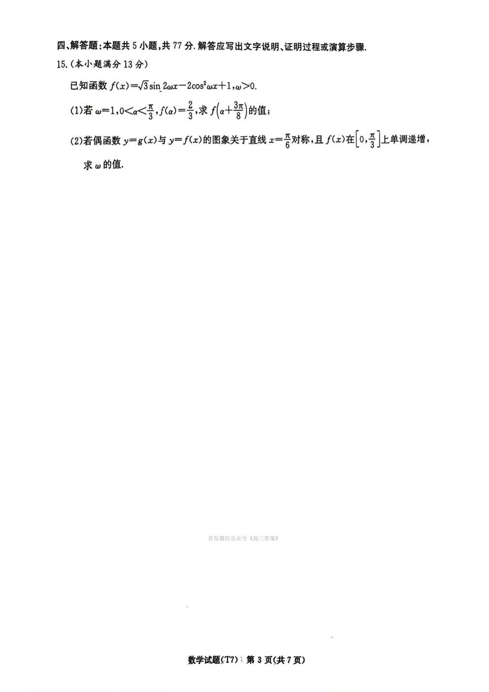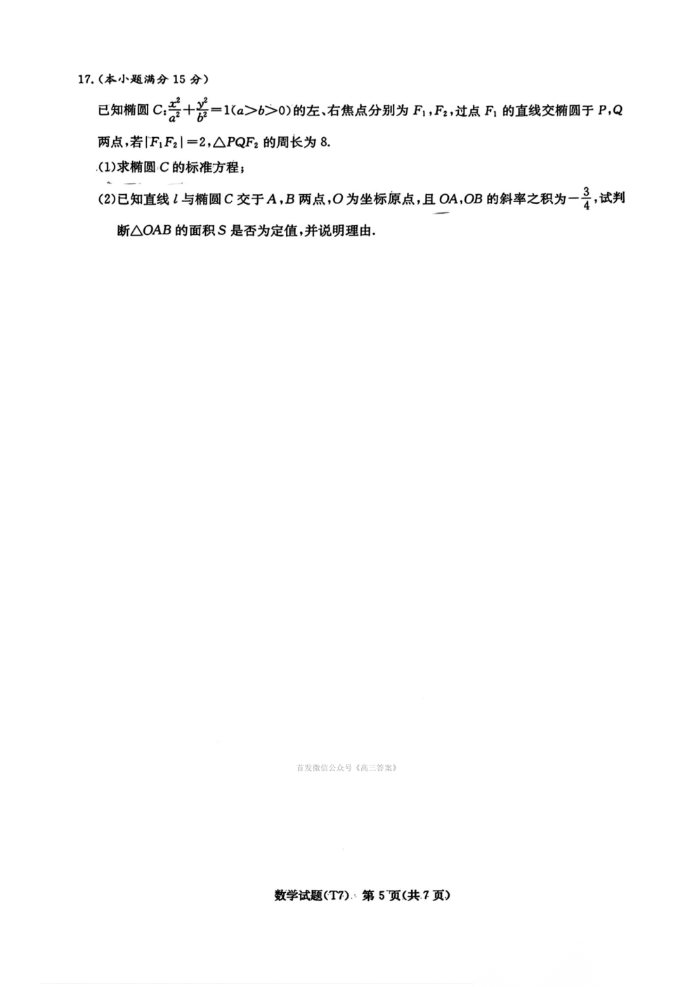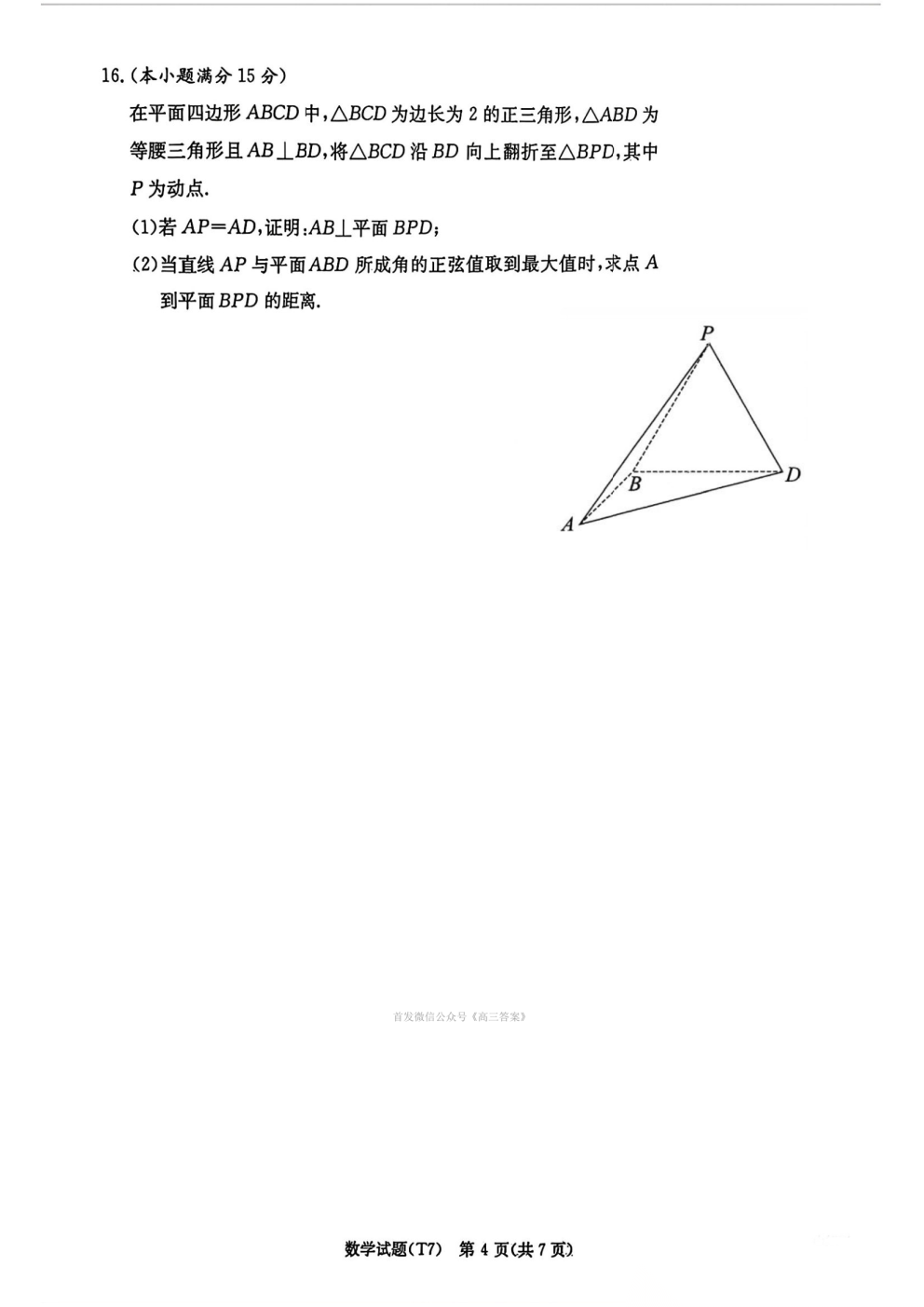 湖南师大附中2026届高三月考试卷七答案